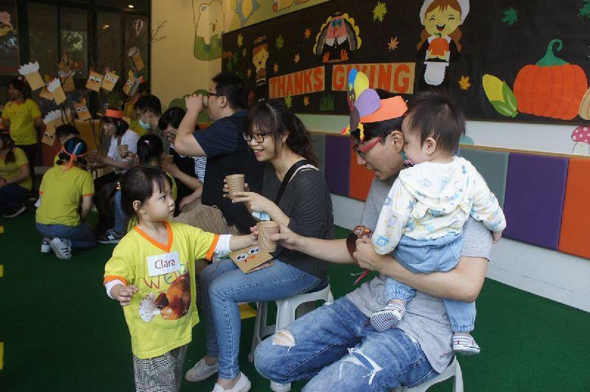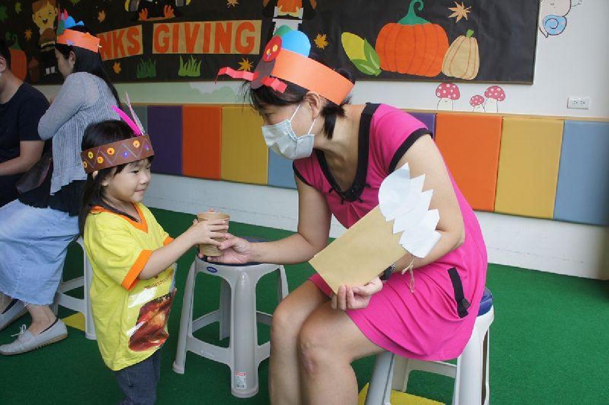 謝謝爸比媽咪每一天對我的照顧、給我愛,爸比媽咪我愛您!感恩節活動讓幼兒DIY火雞餐與送卡片、奉茶來感謝爸比媽咪對自己的照顧,也讓幼兒體驗照顧爸比媽咪的過程,爸比媽咪對幼兒付出的愛在今天的活動中讓幼兒回饋給您們!