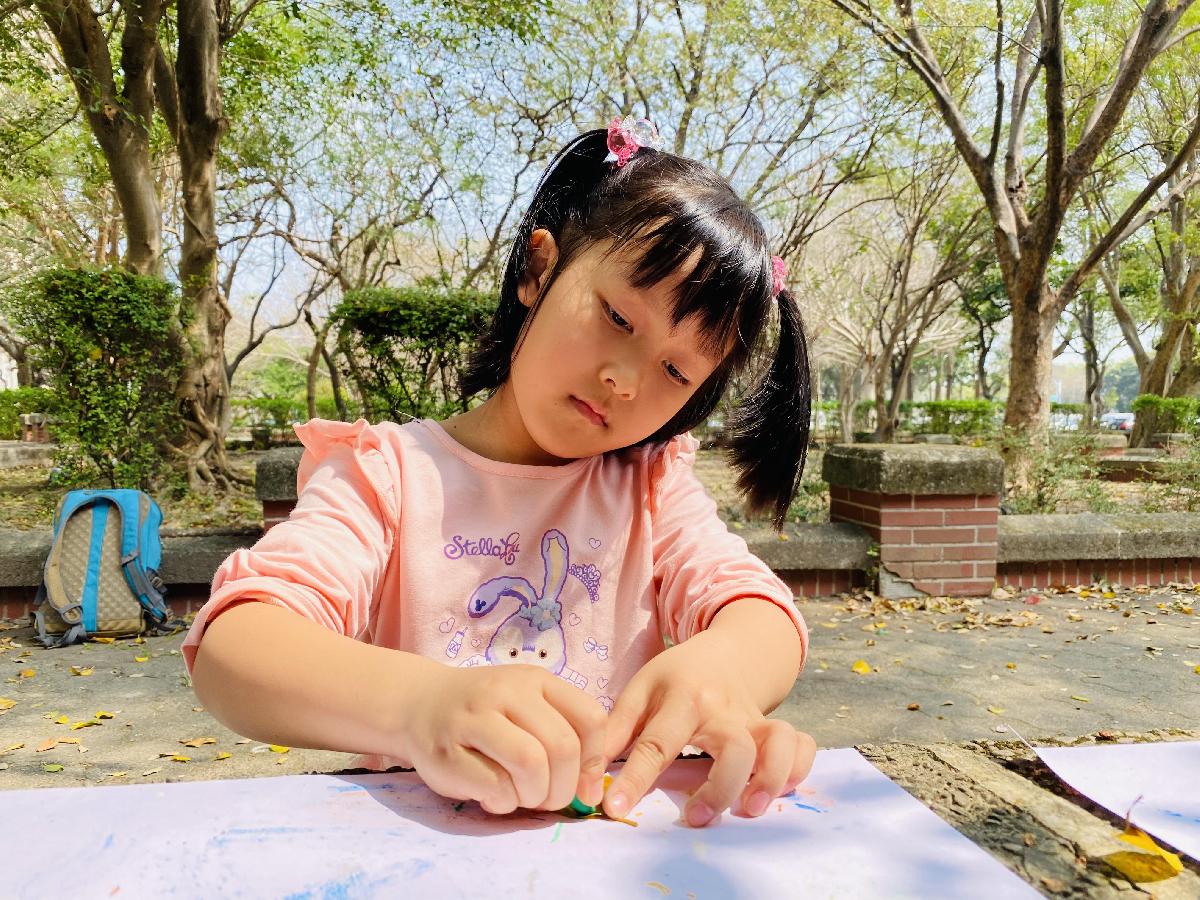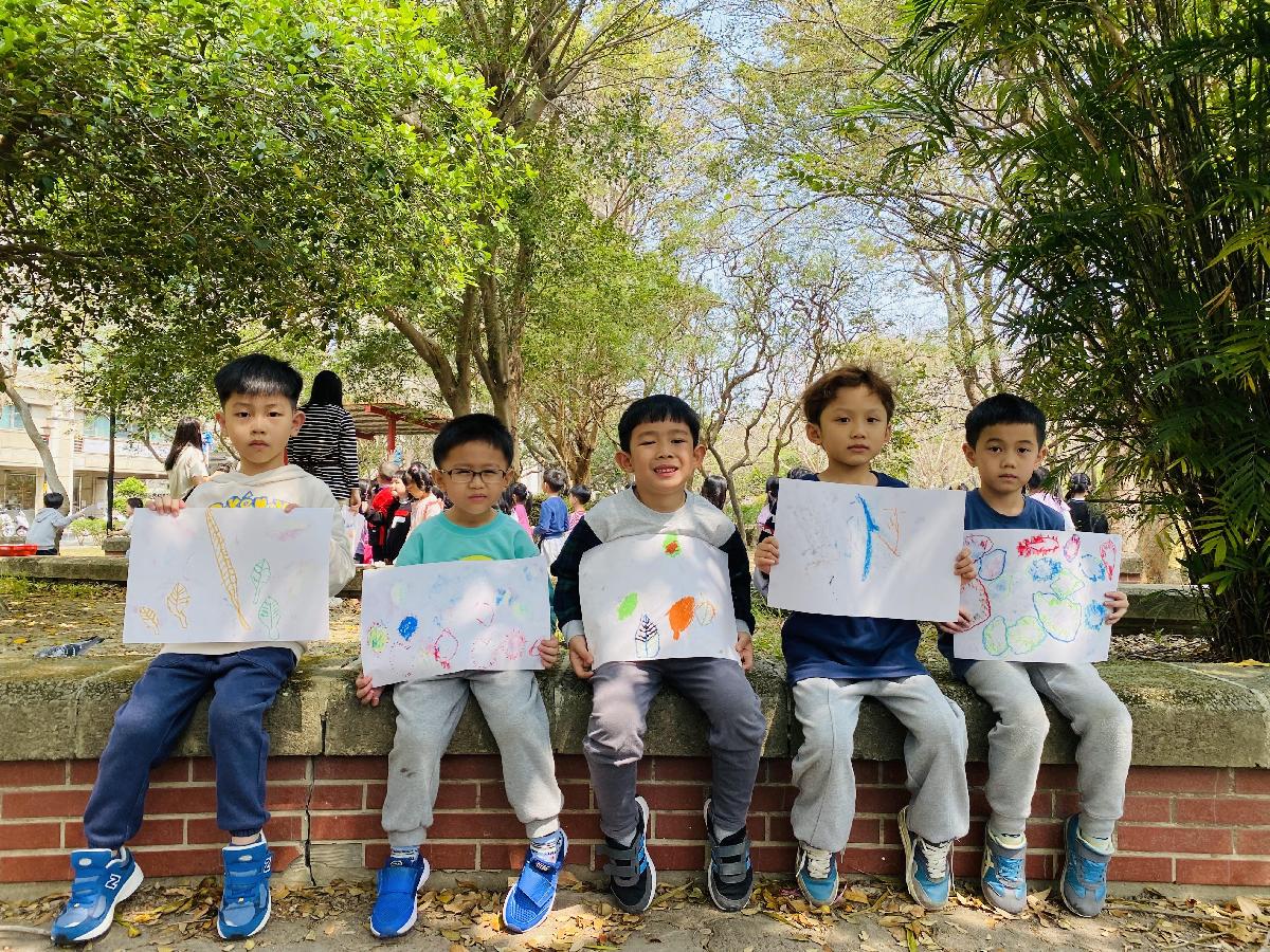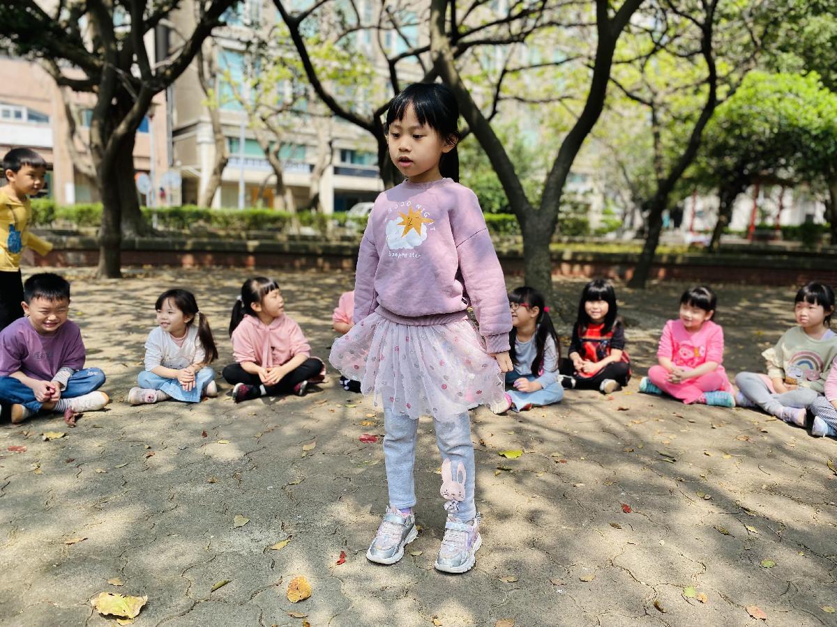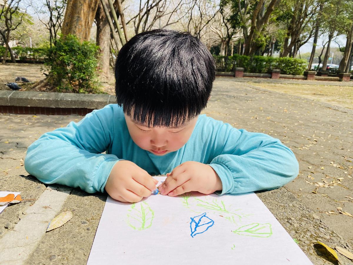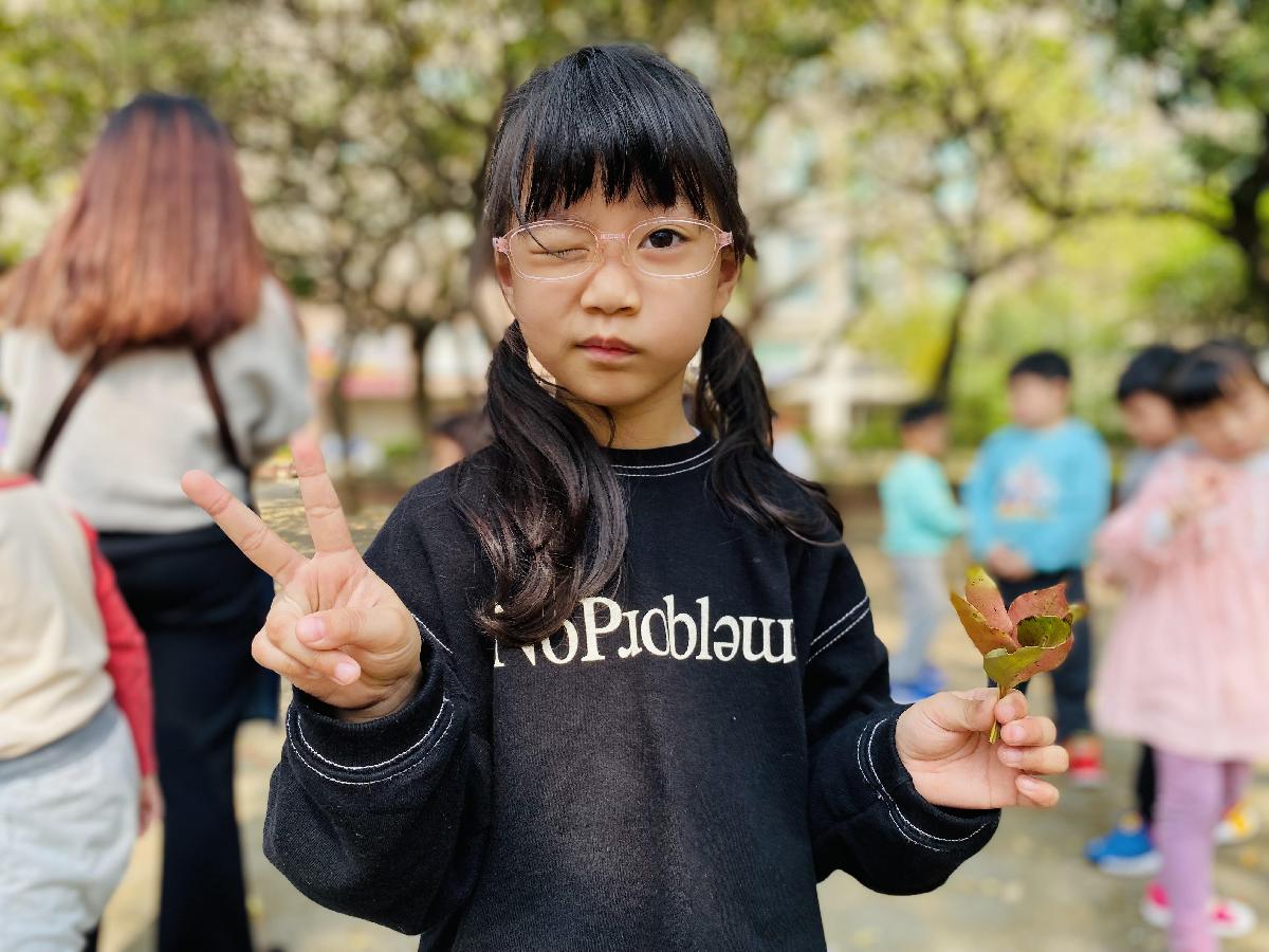 幼兒們利用地上的落葉