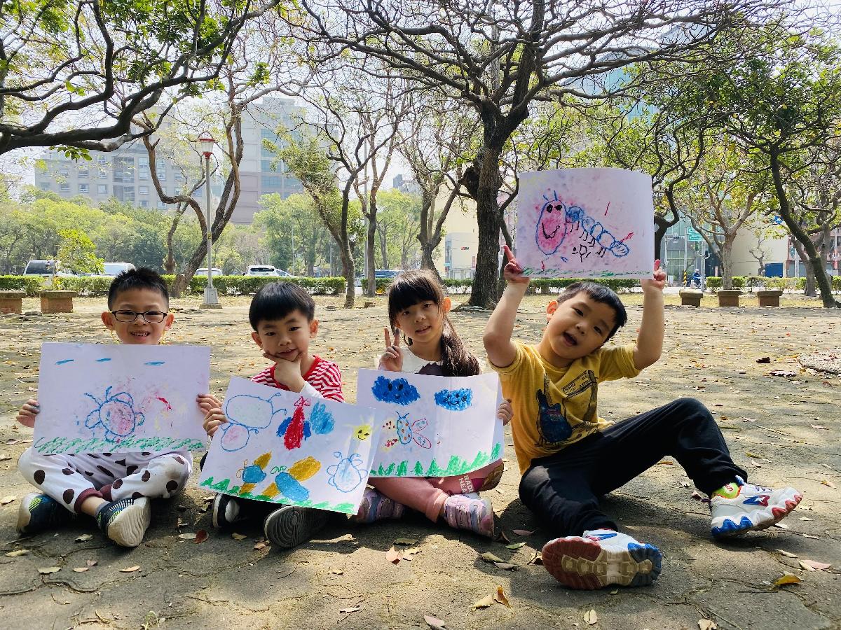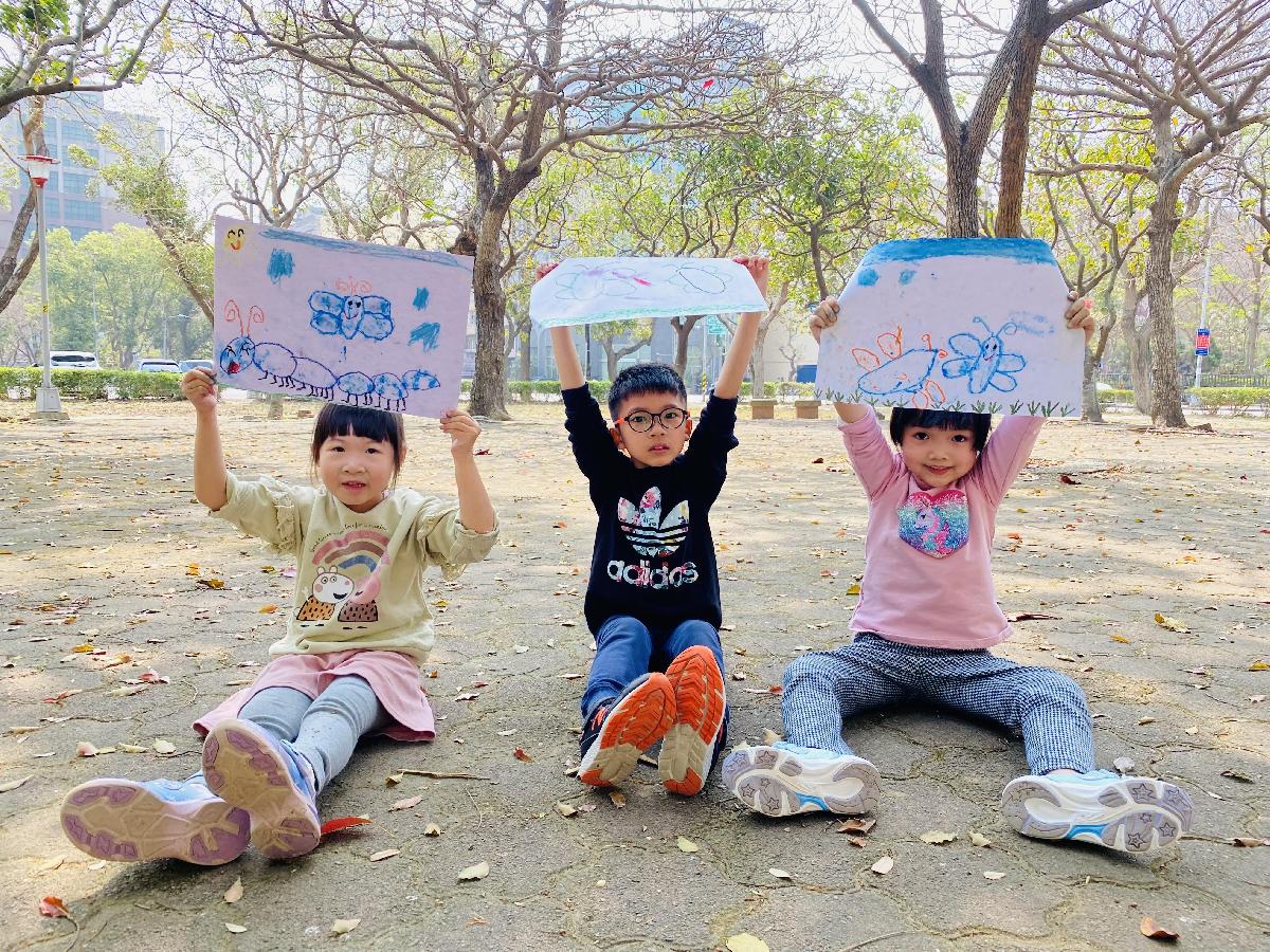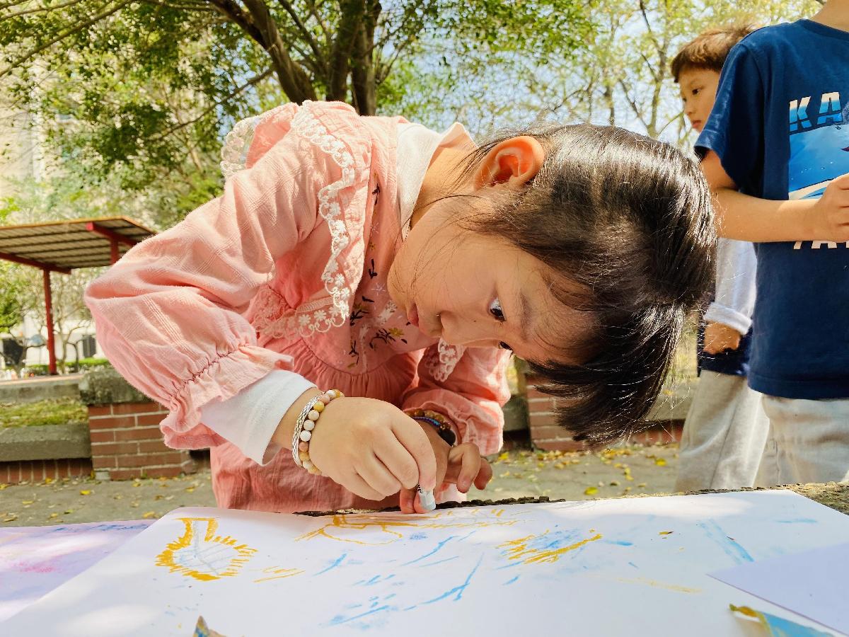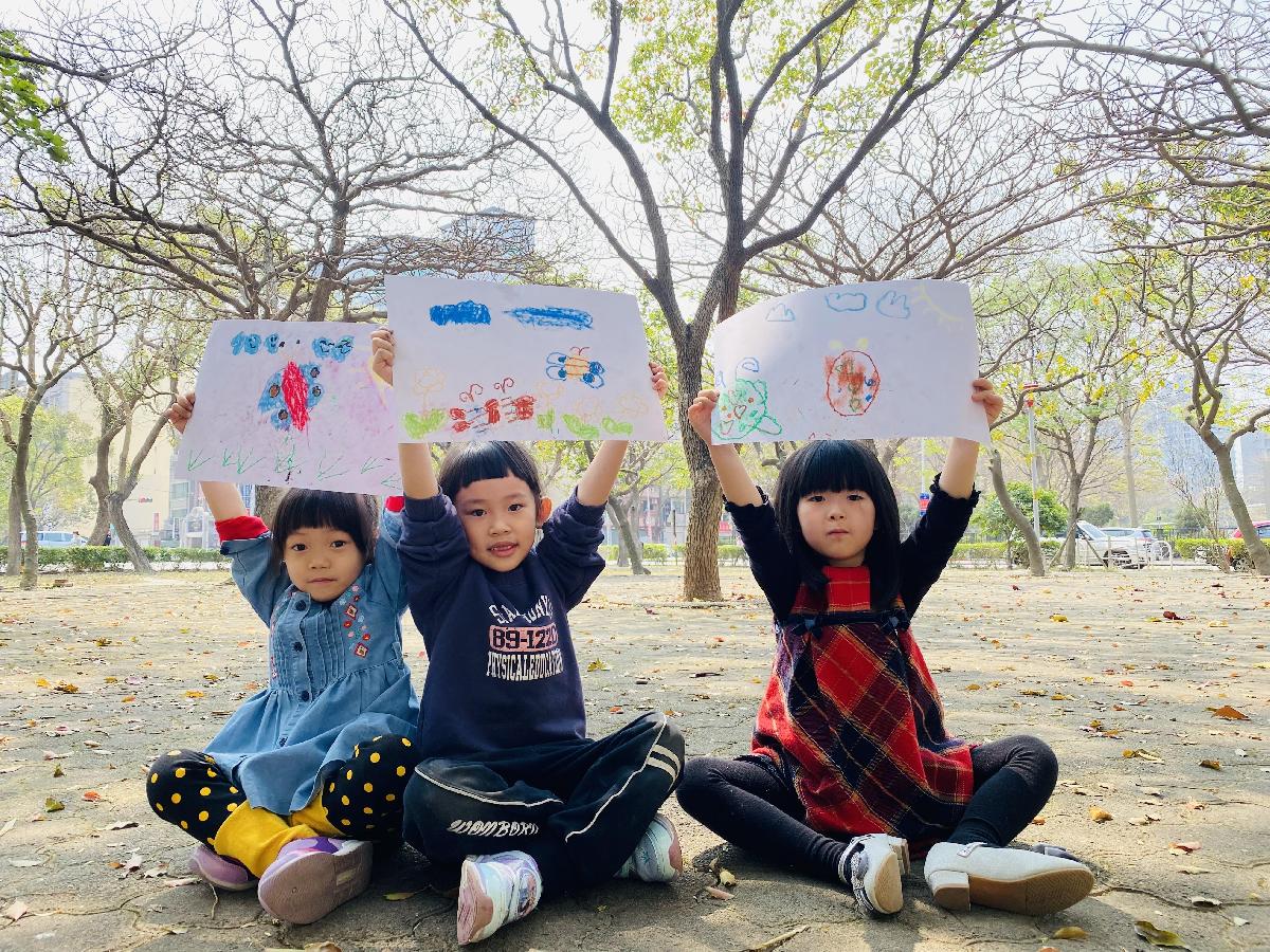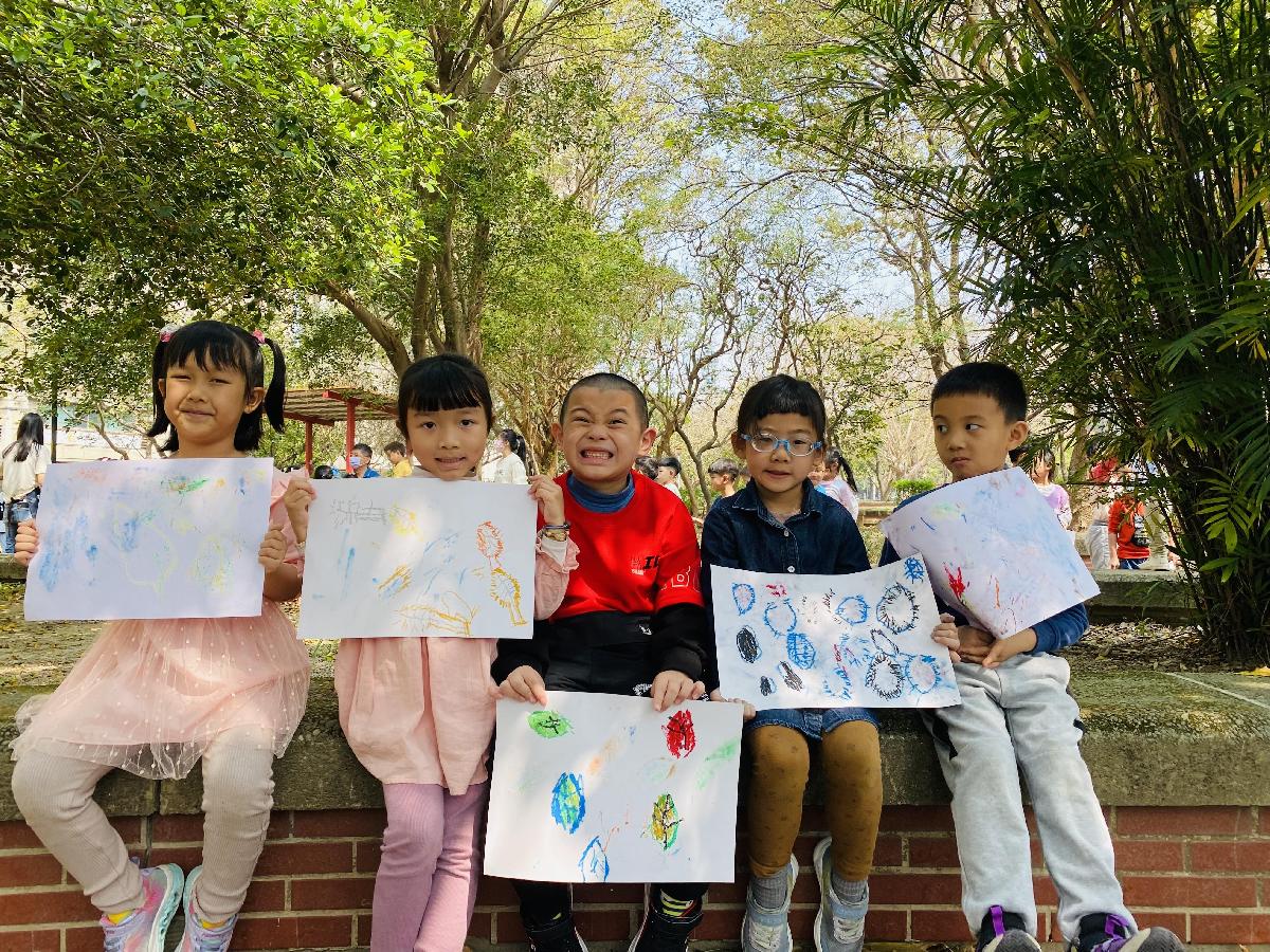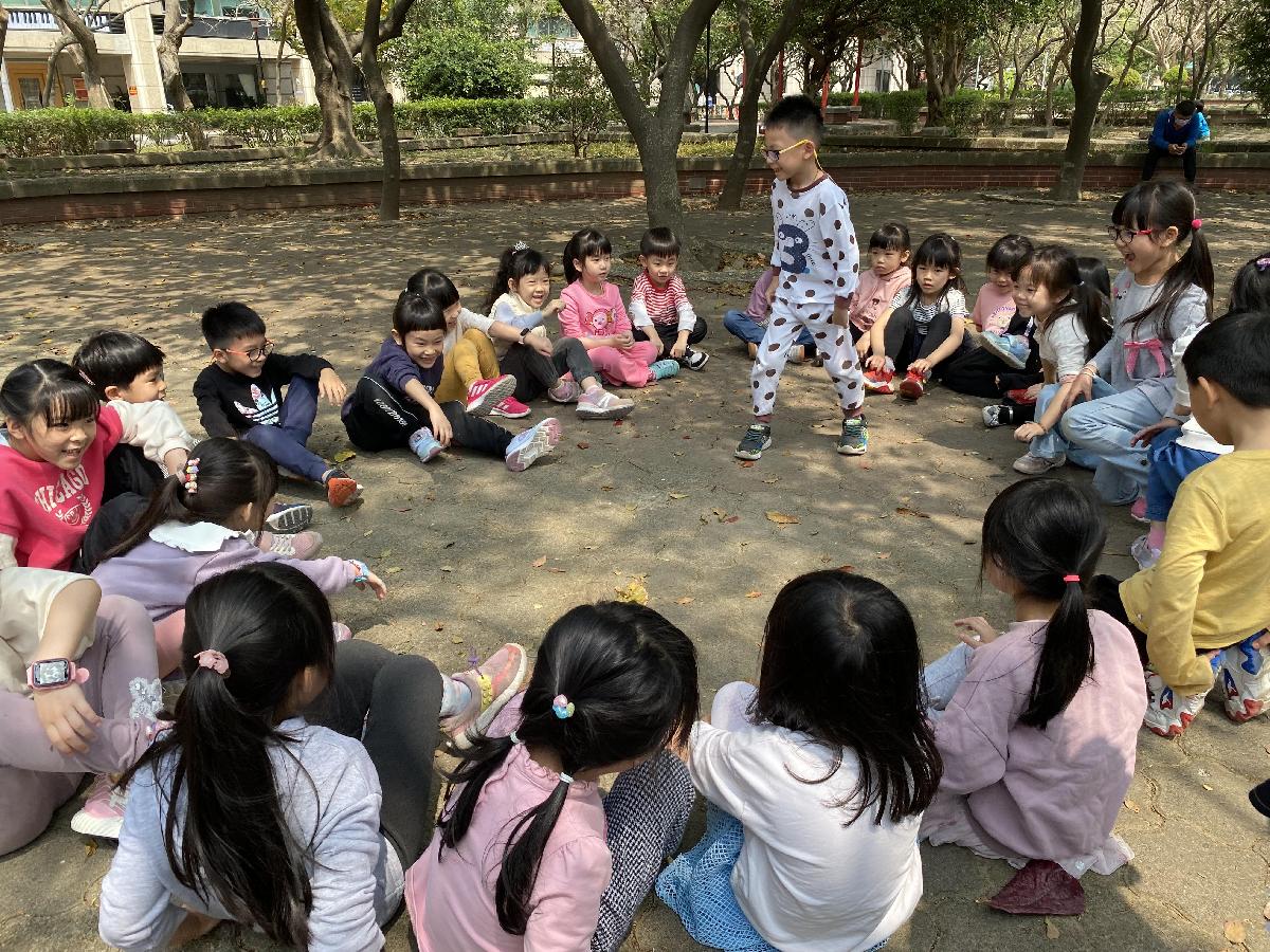 幼兒們利用地上的落葉