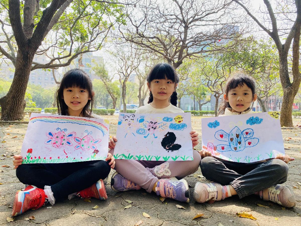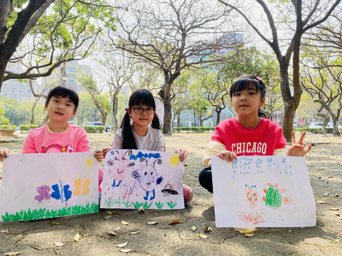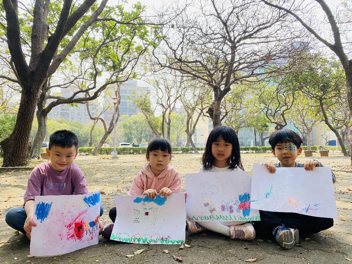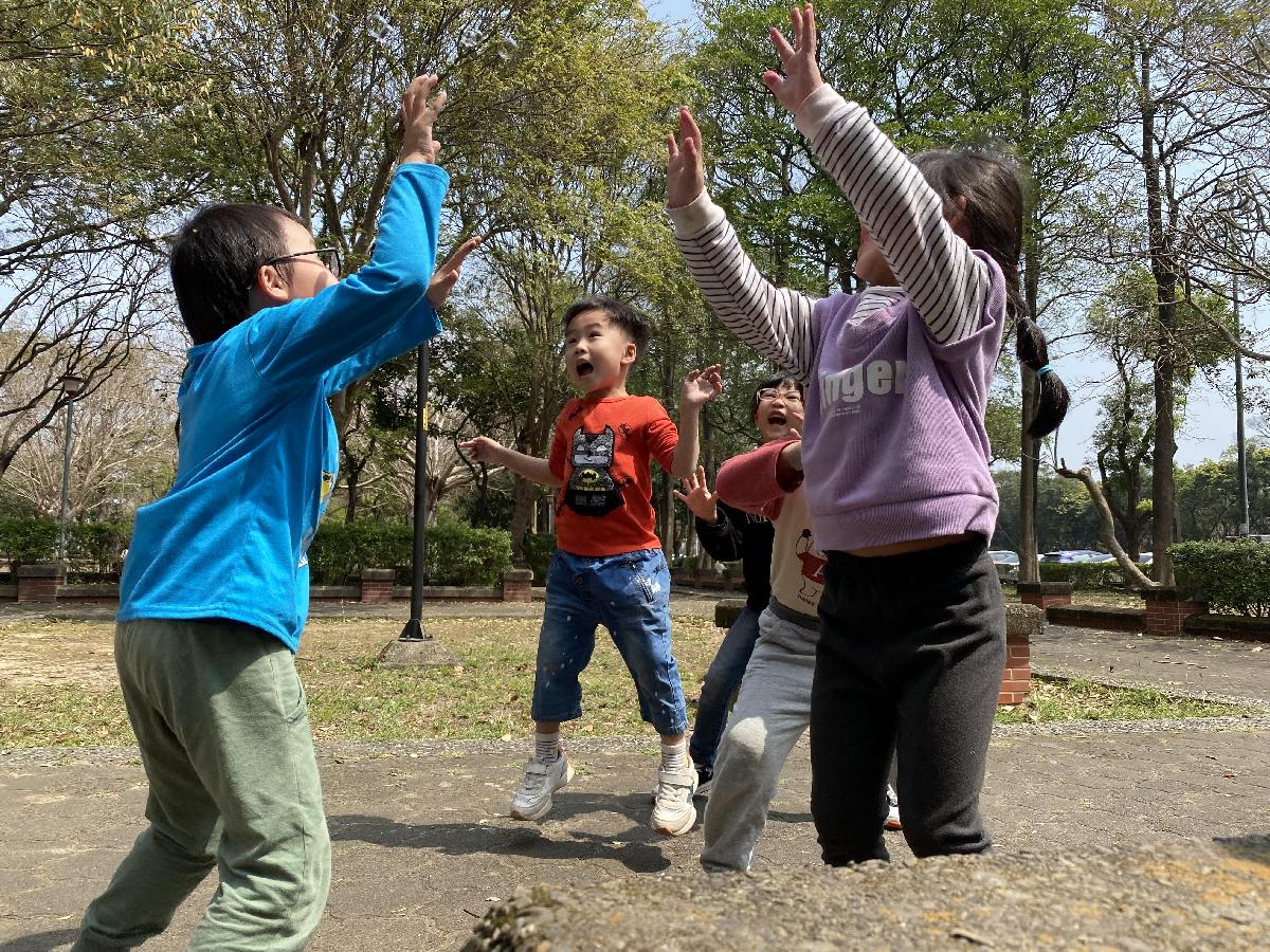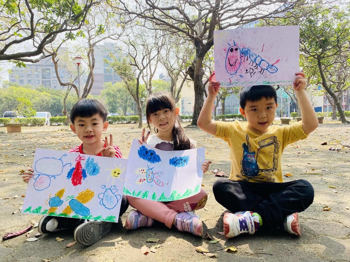 幼兒們利用地上的落葉