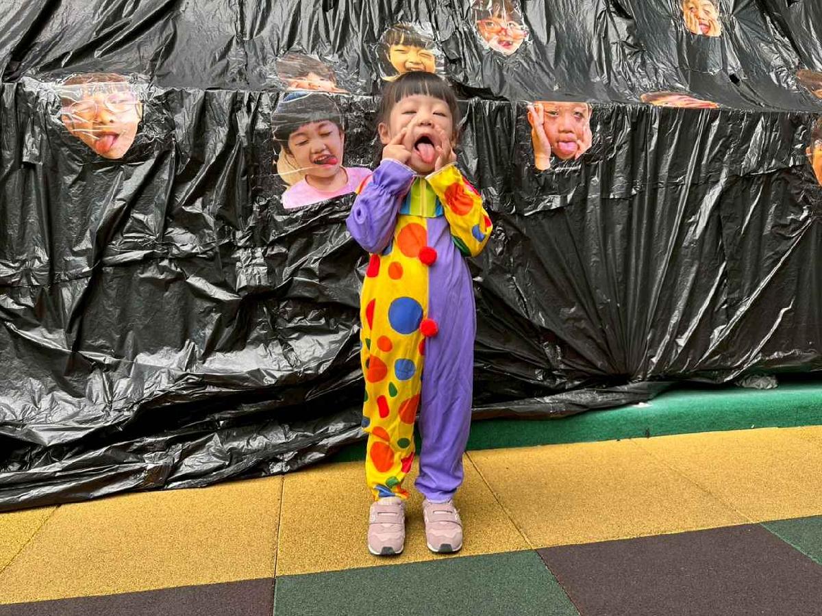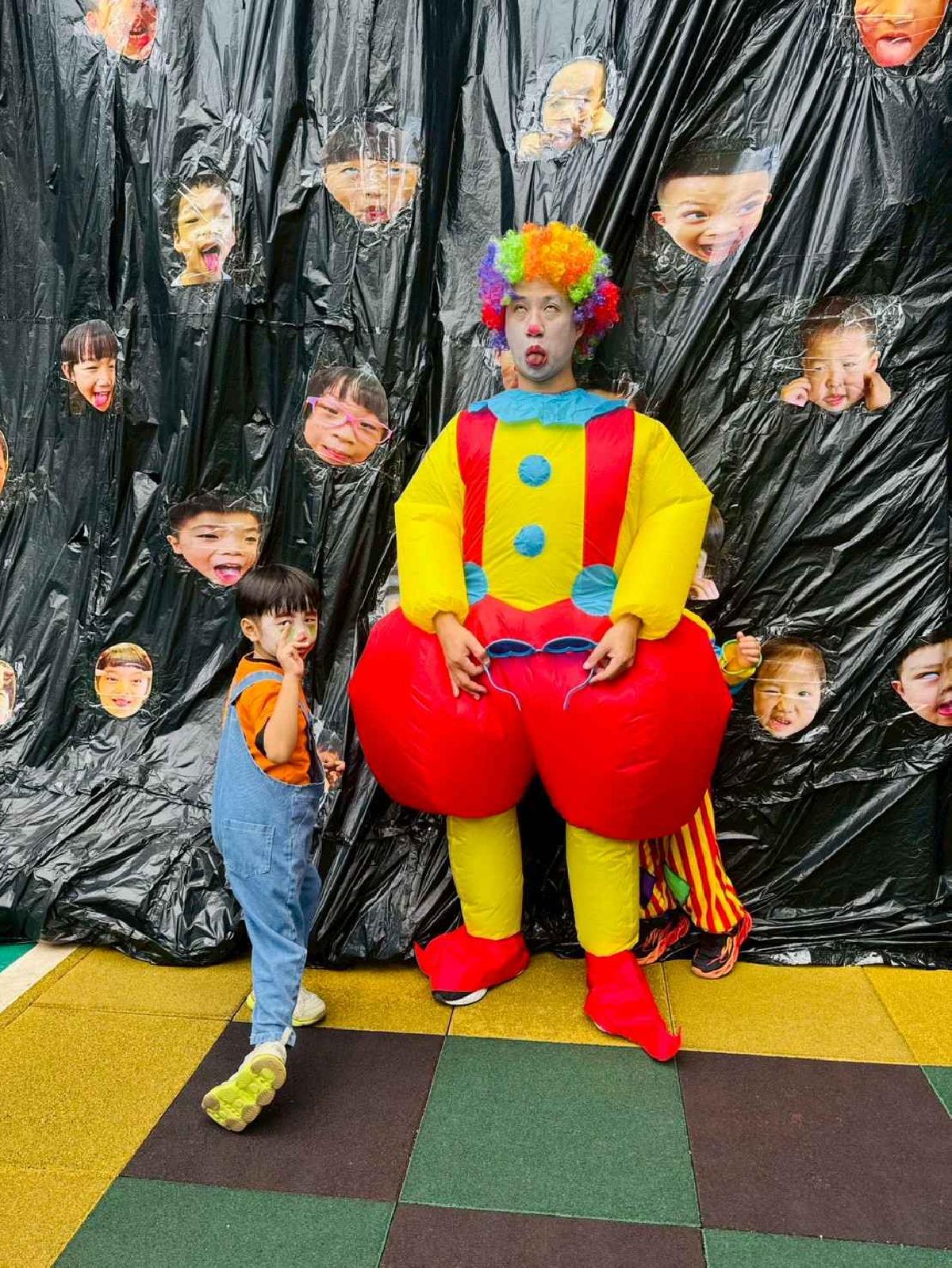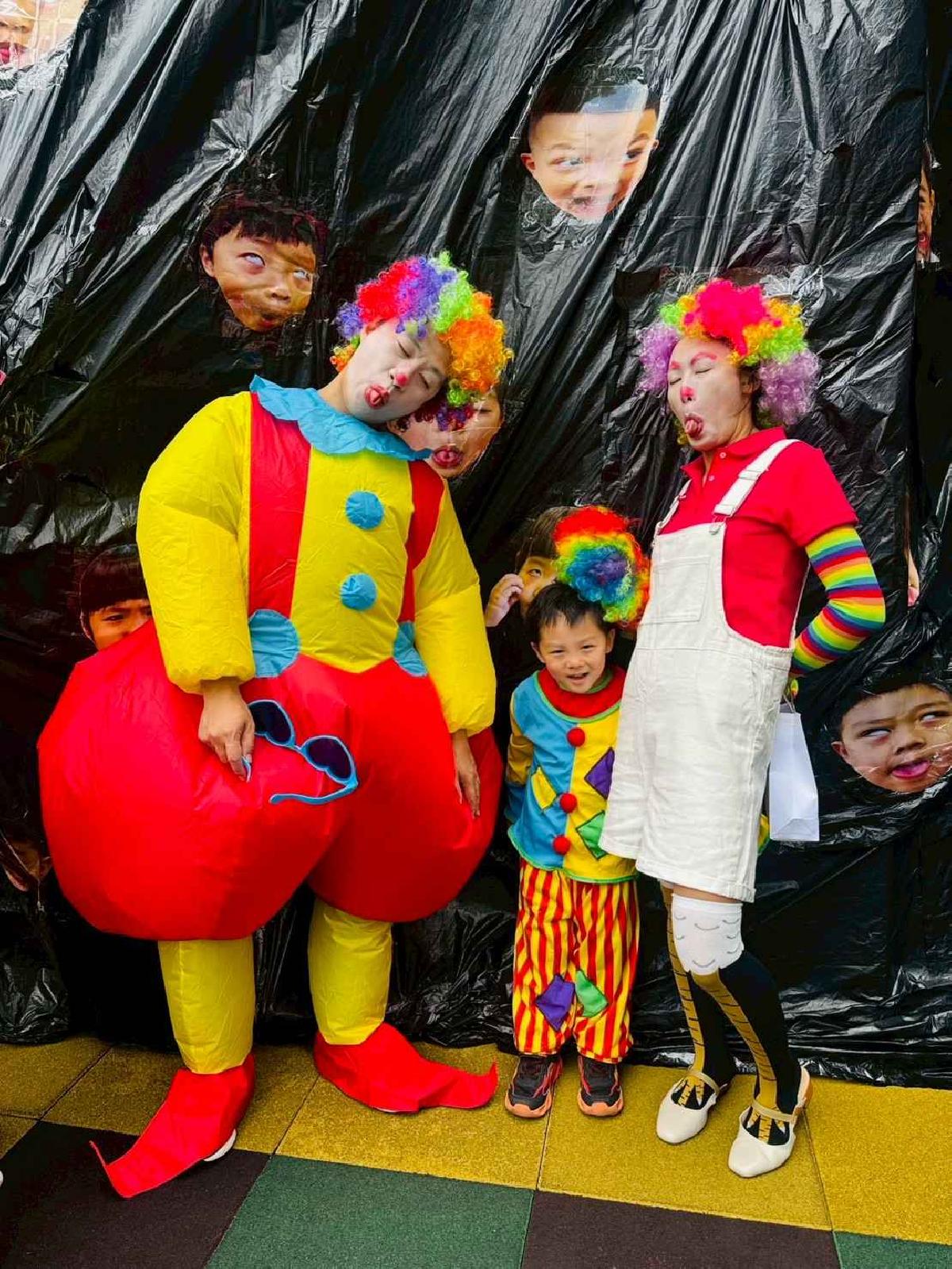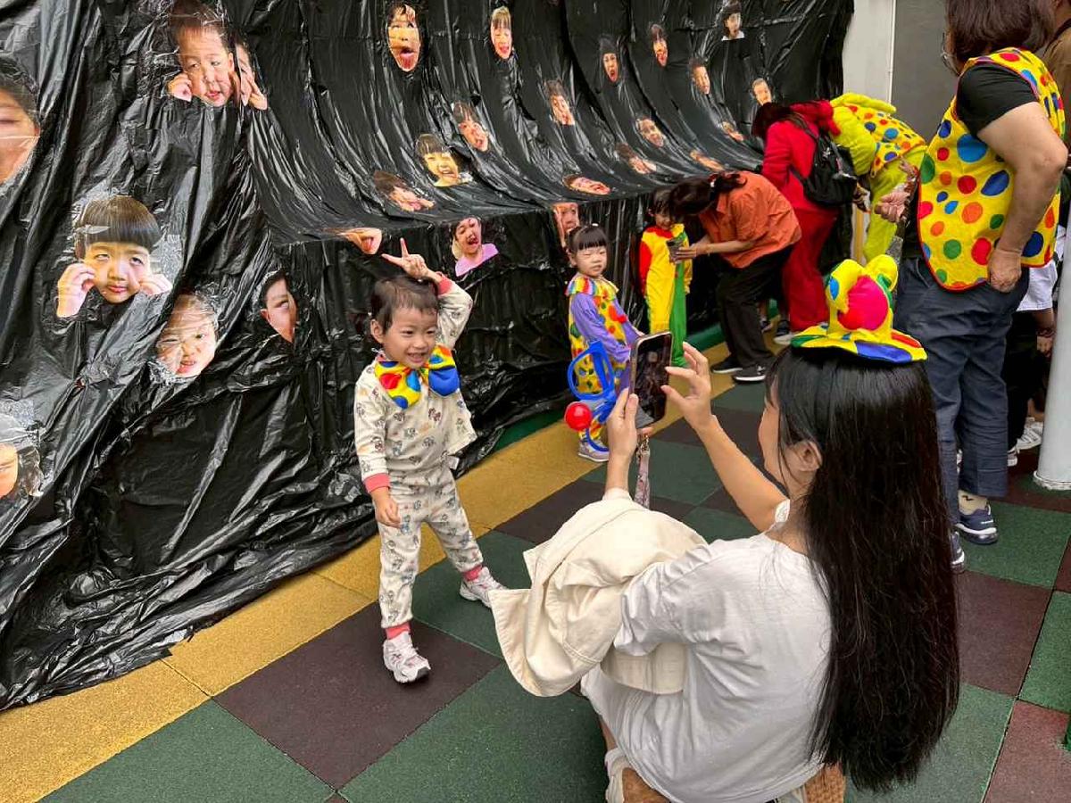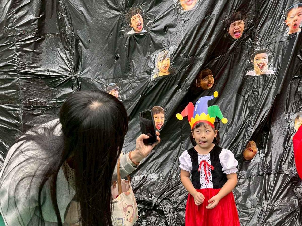 今年我們以《小丑鬼靈精PARTY》為主題,一整面貼滿孩子「鬼臉照」的主牆