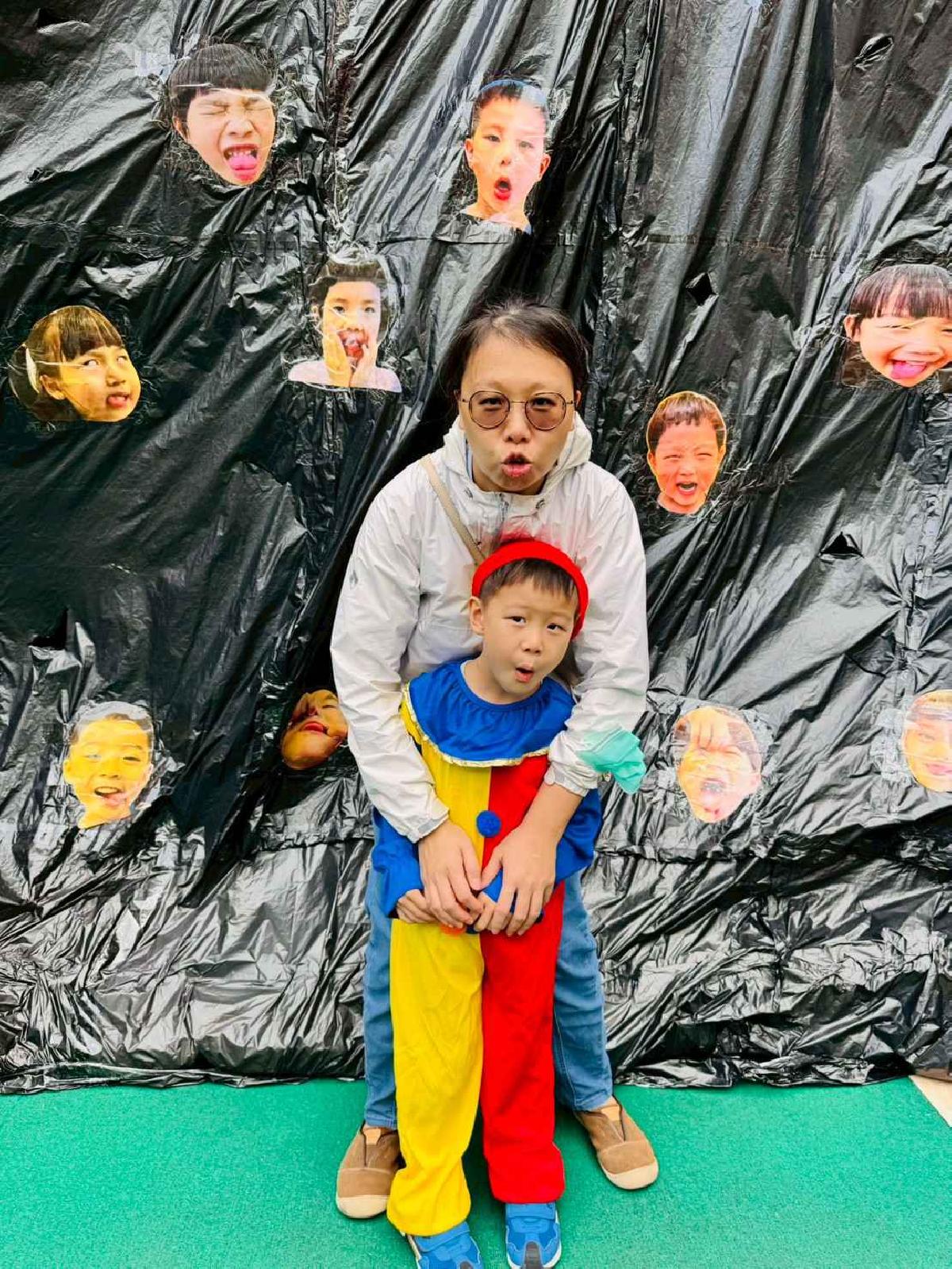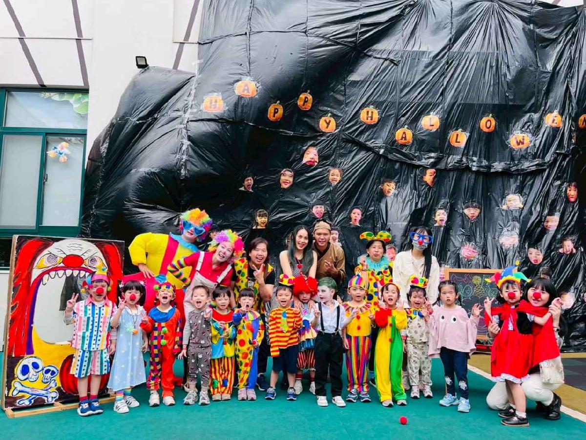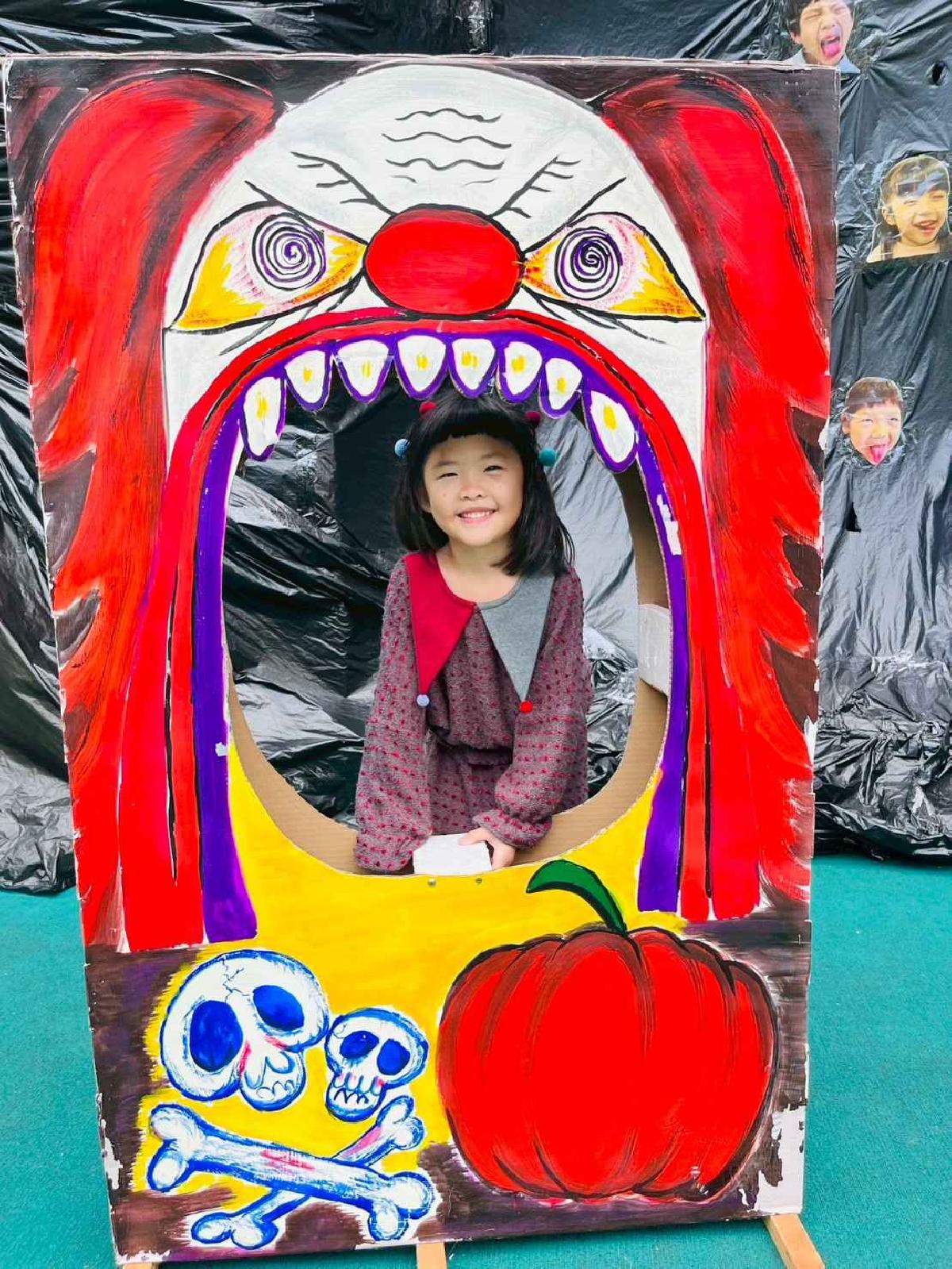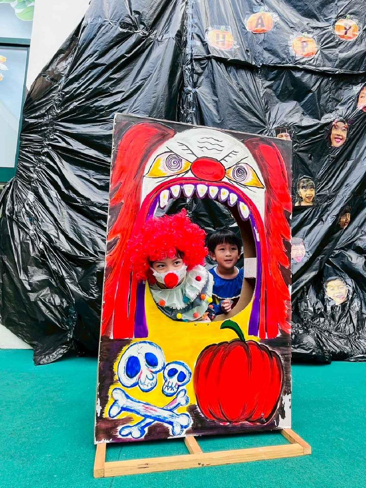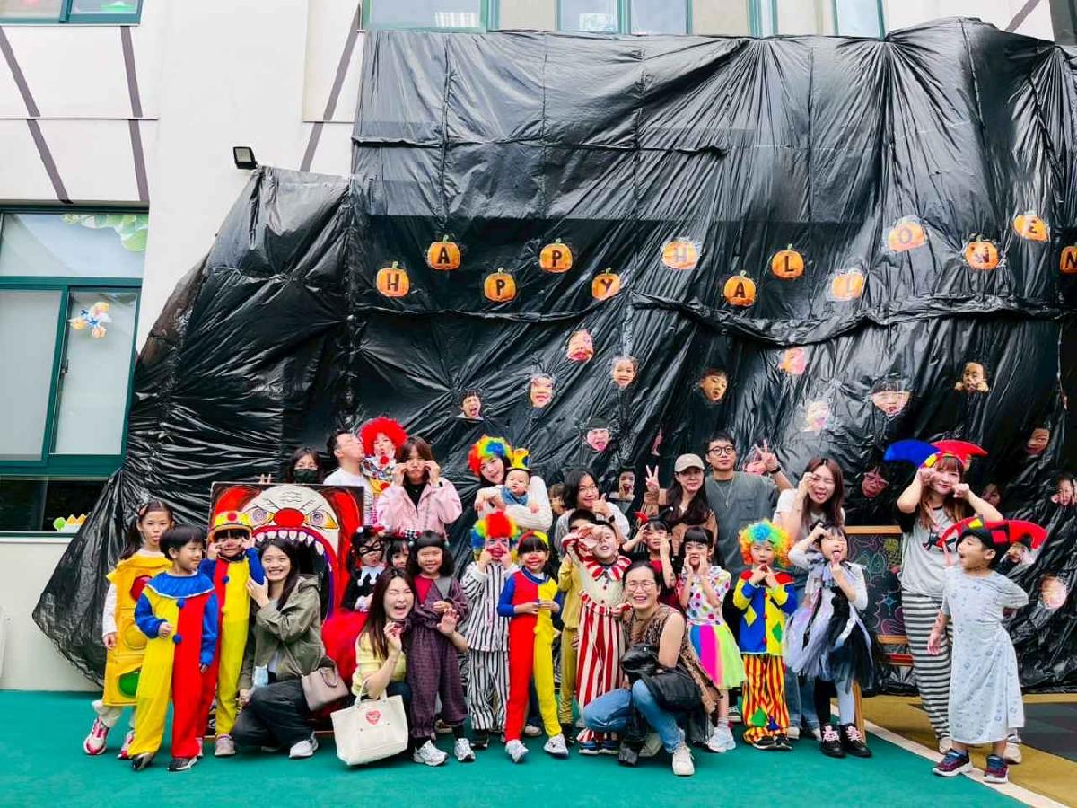 今年我們以《小丑鬼靈精PARTY》為主題,一整面貼滿孩子「鬼臉照」的主牆