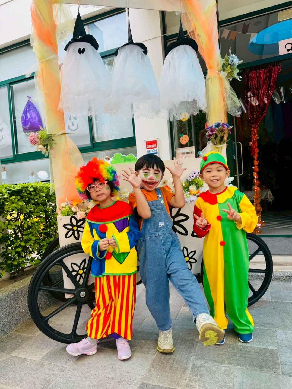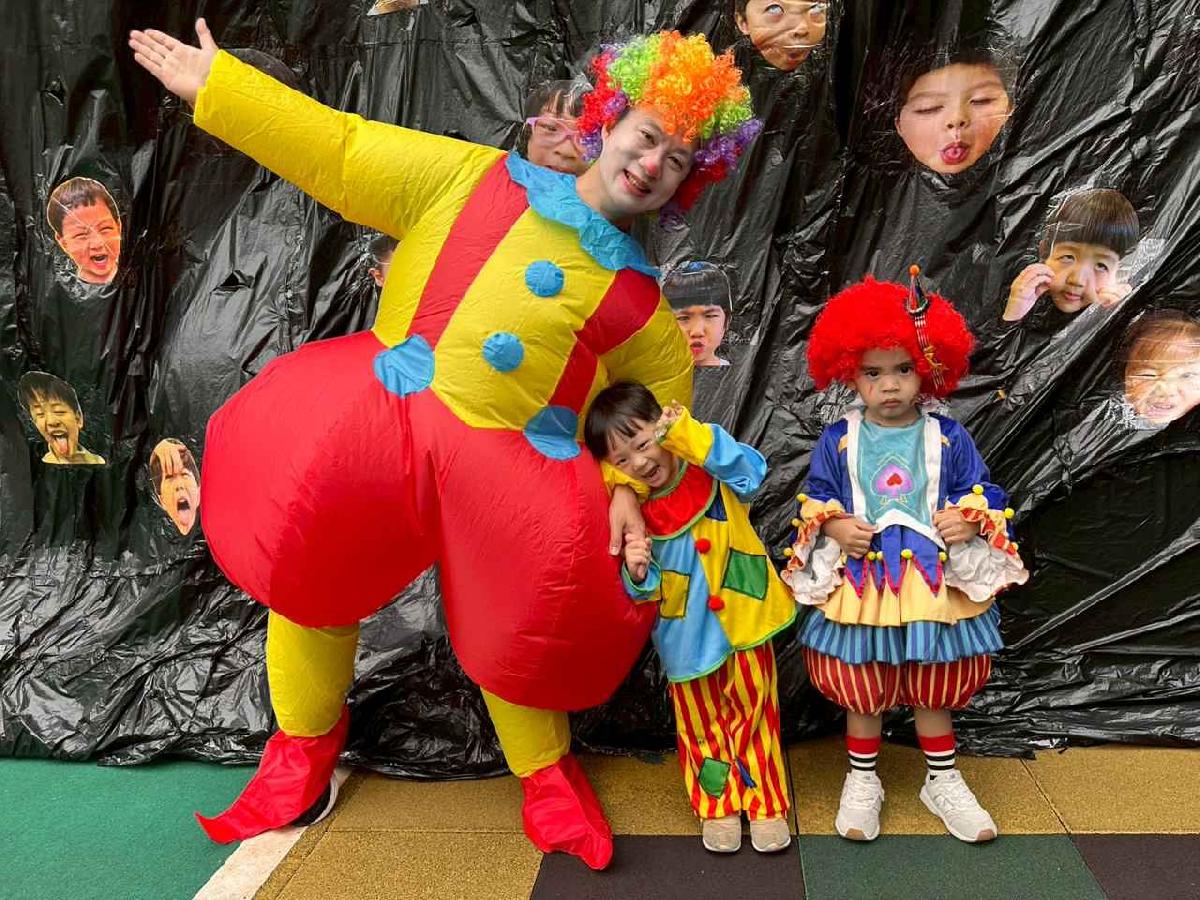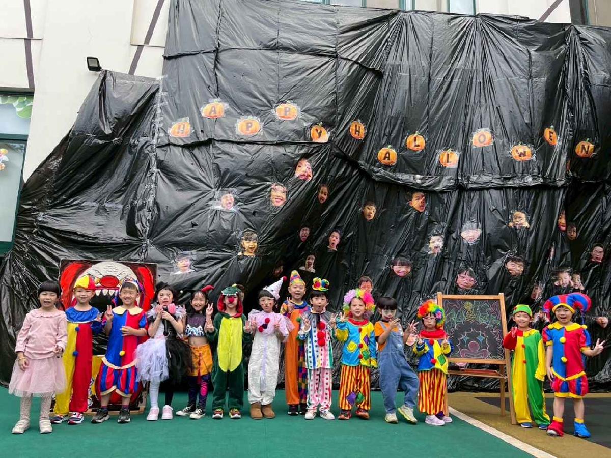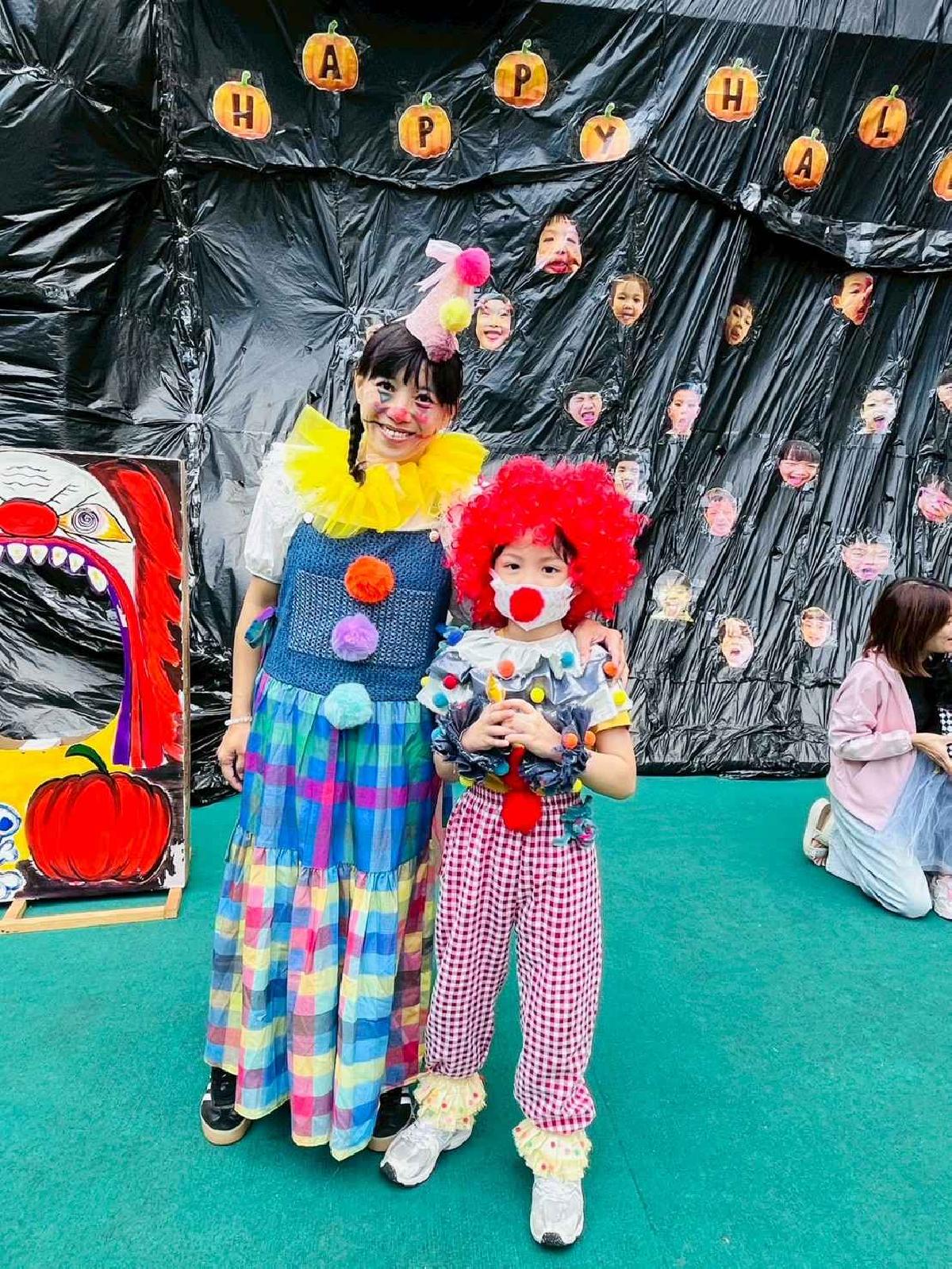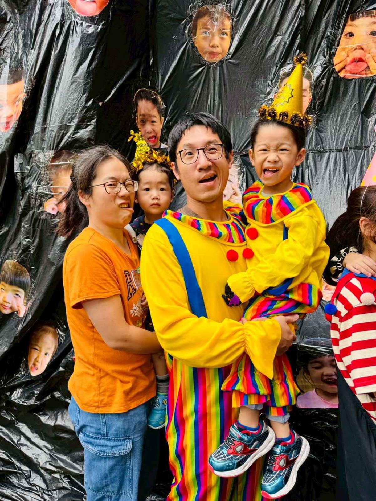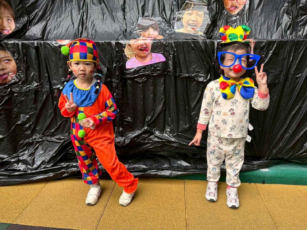今年我們以《小丑鬼靈精PARTY》為主題,一整面貼滿孩子「鬼臉照」的主牆