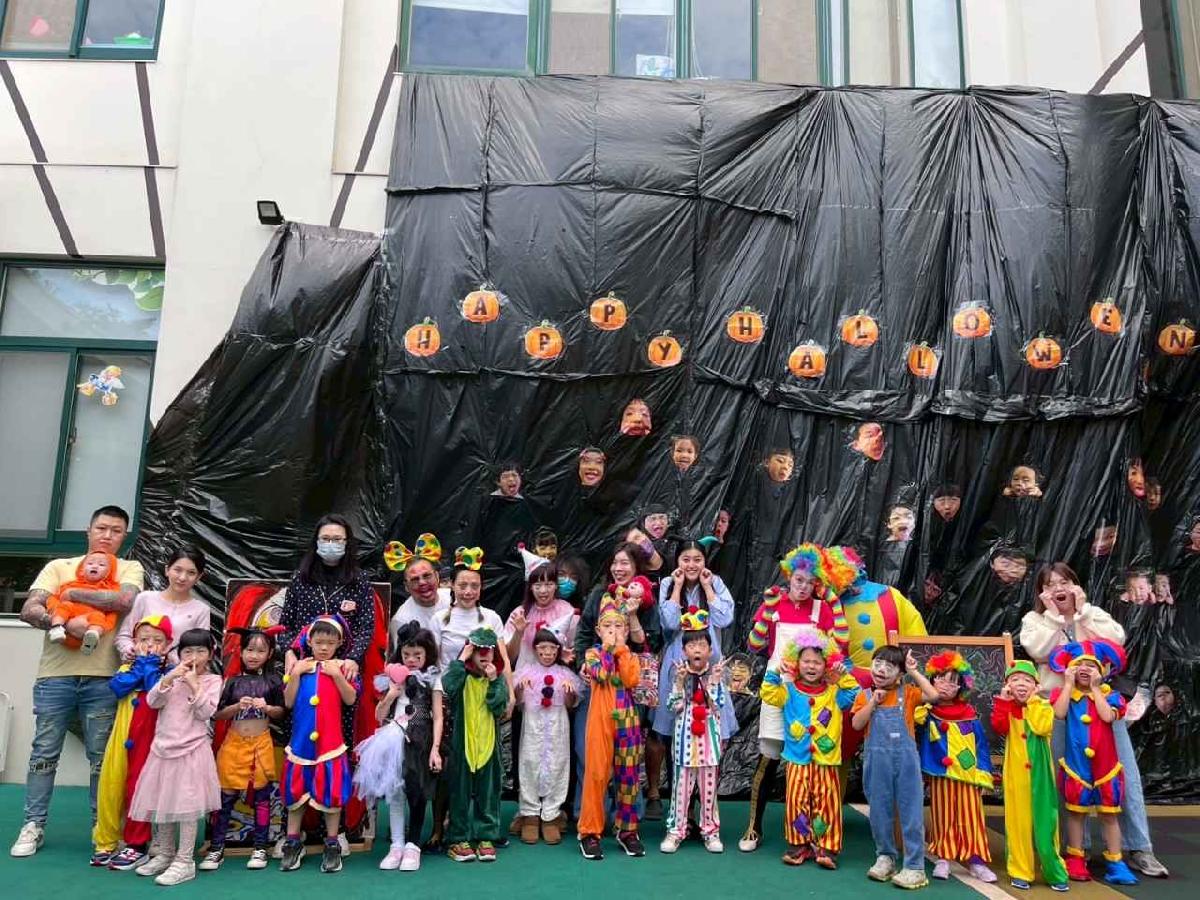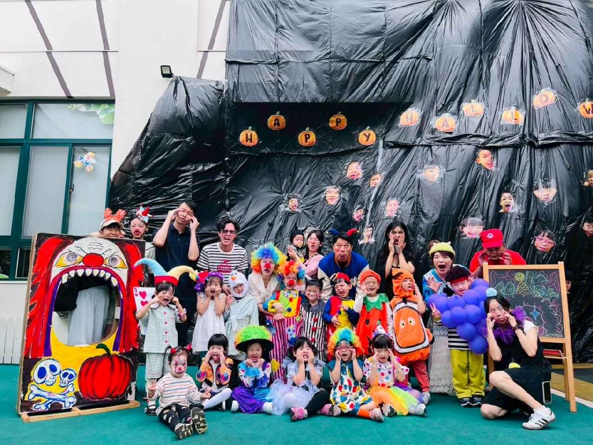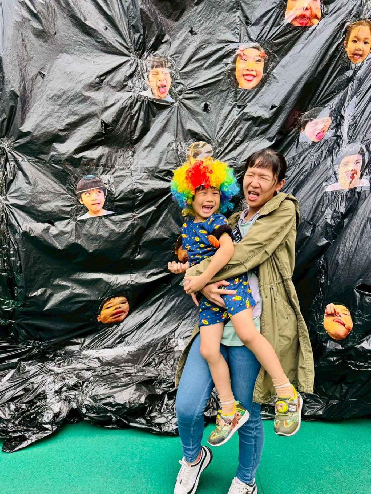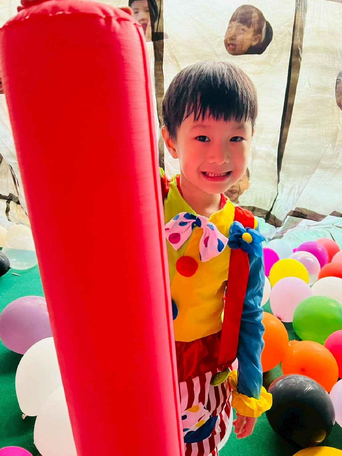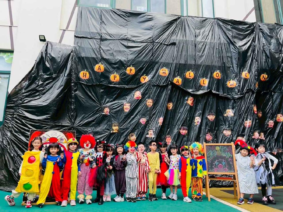 今年我們以《小丑鬼靈精PARTY》為主題,一整面貼滿孩子「鬼臉照」的主牆