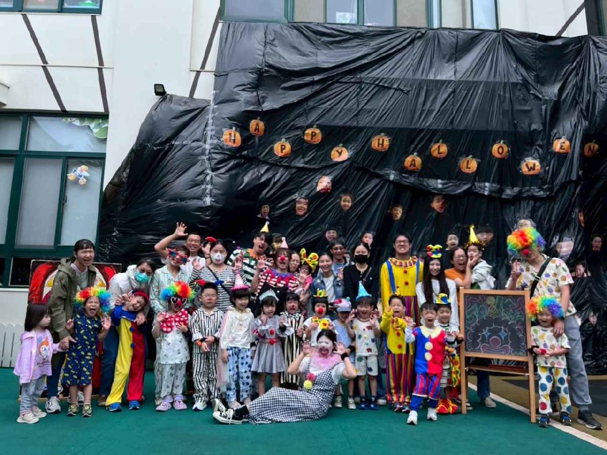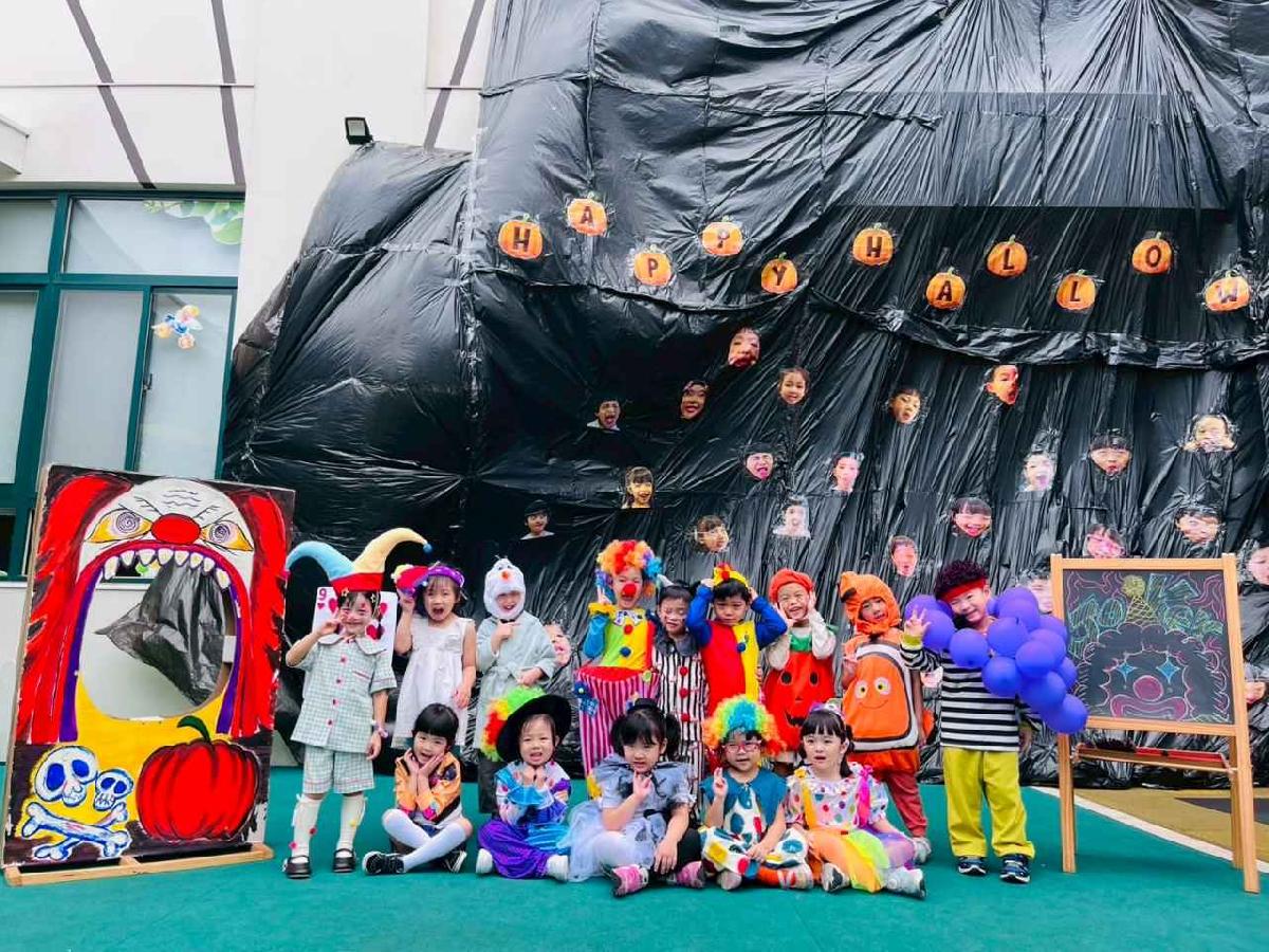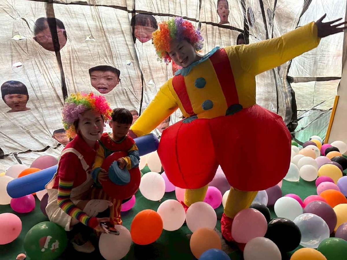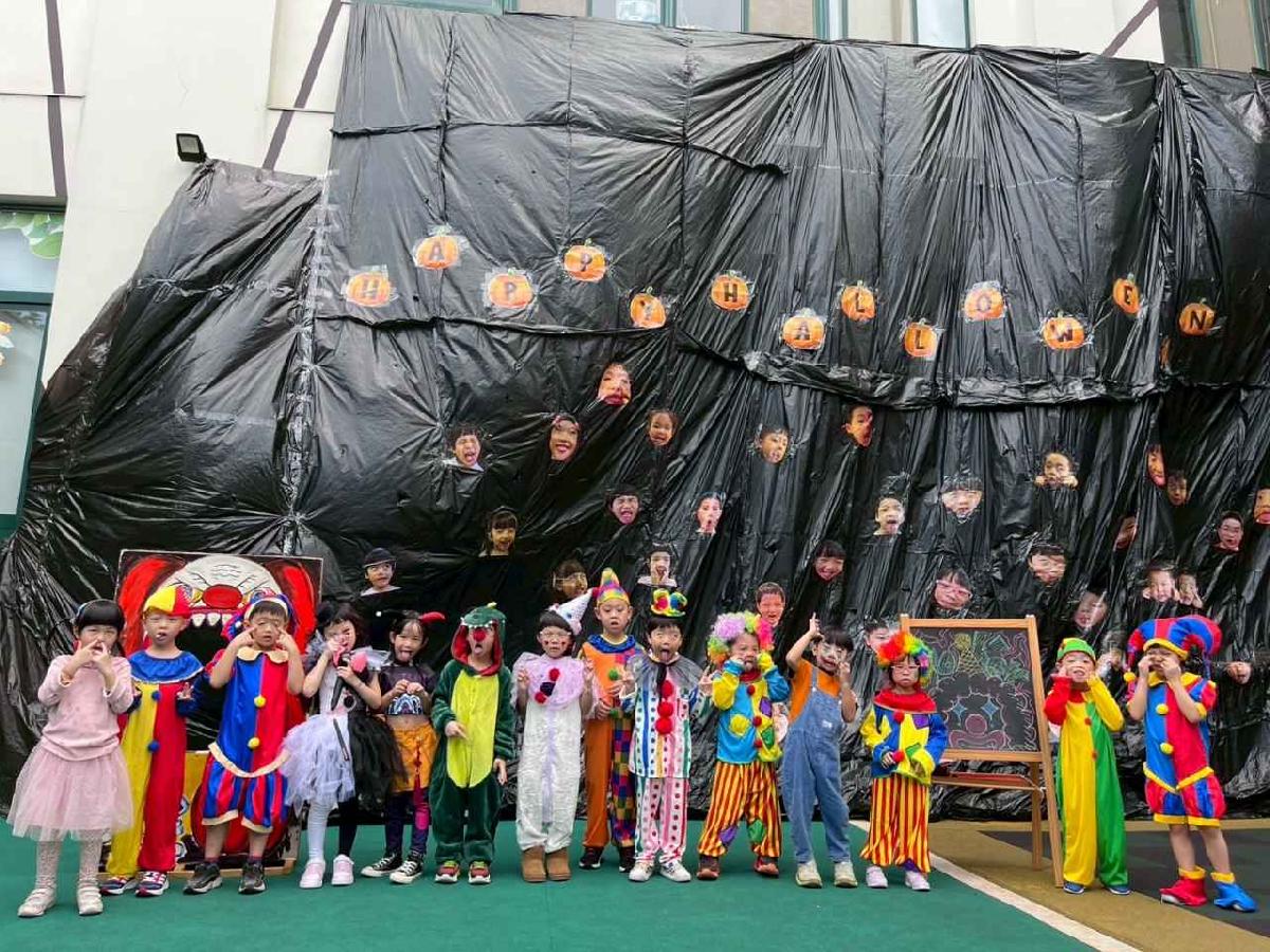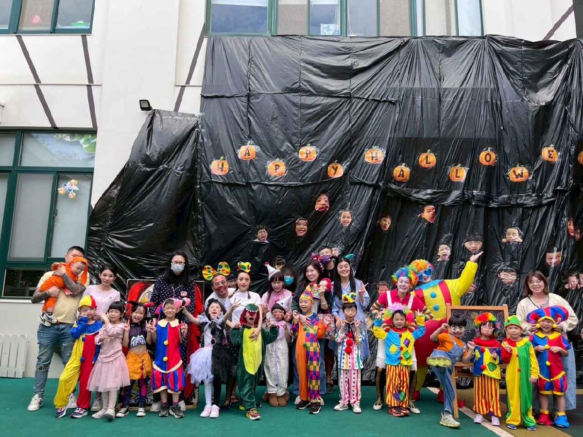 今年我們以《小丑鬼靈精PARTY》為主題,一整面貼滿孩子「鬼臉照」的主牆