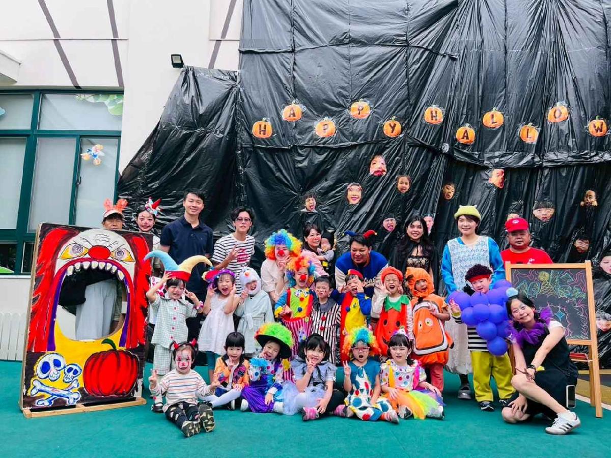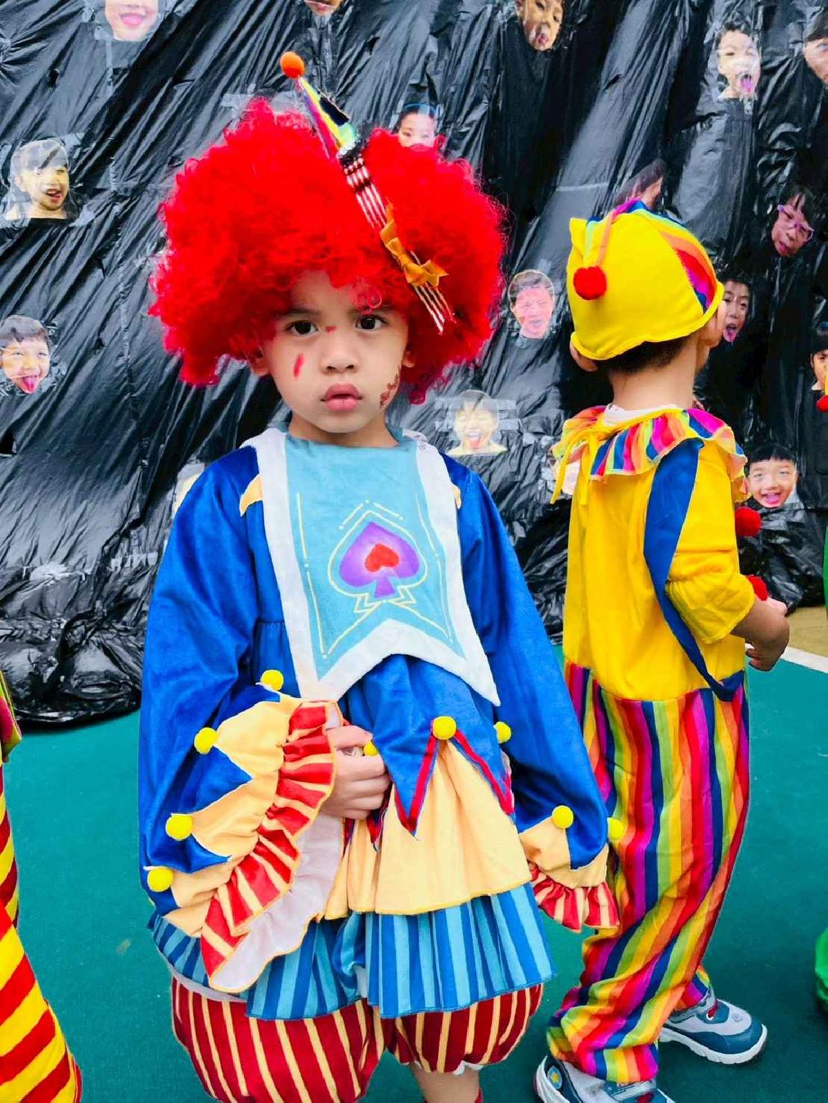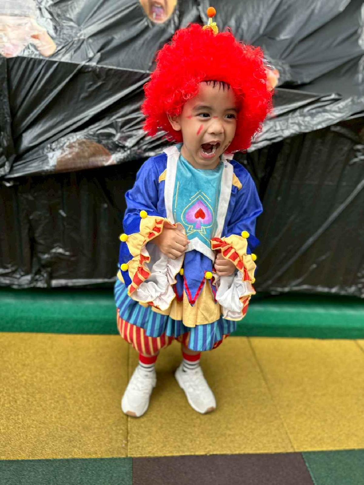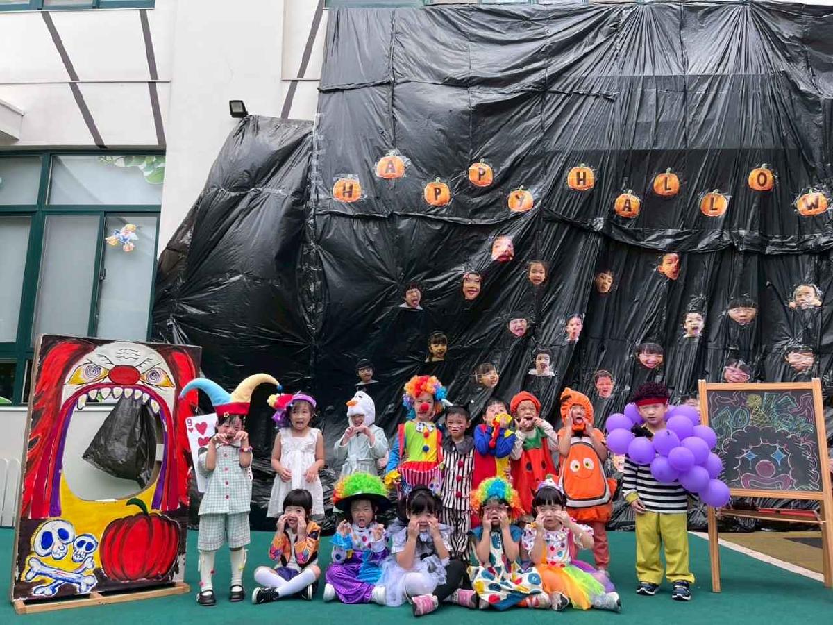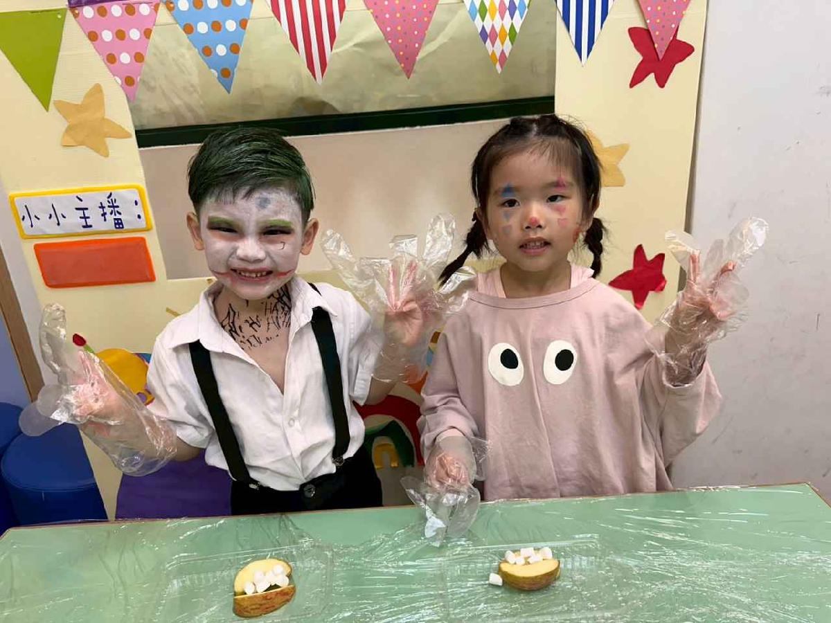 今年我們以《小丑鬼靈精PARTY》為主題,一整面貼滿孩子「鬼臉照」的主牆