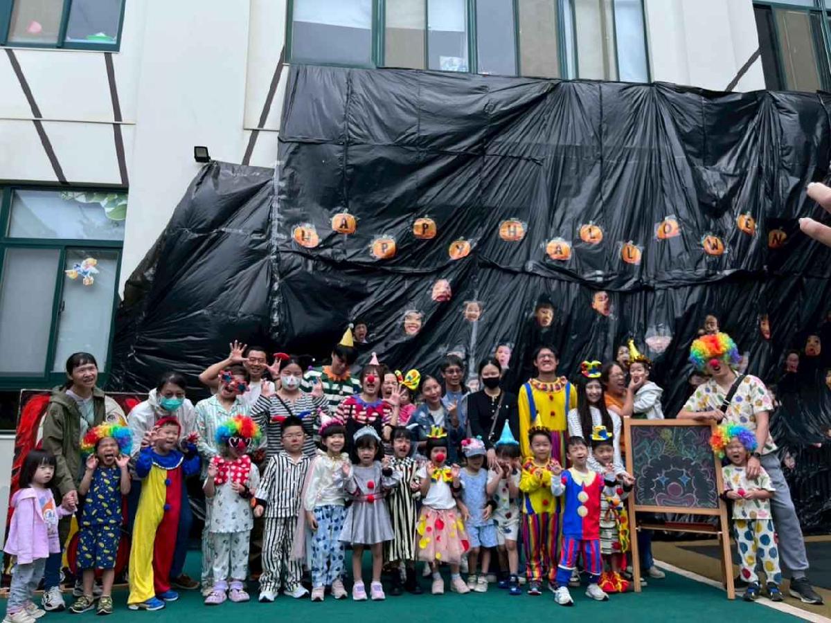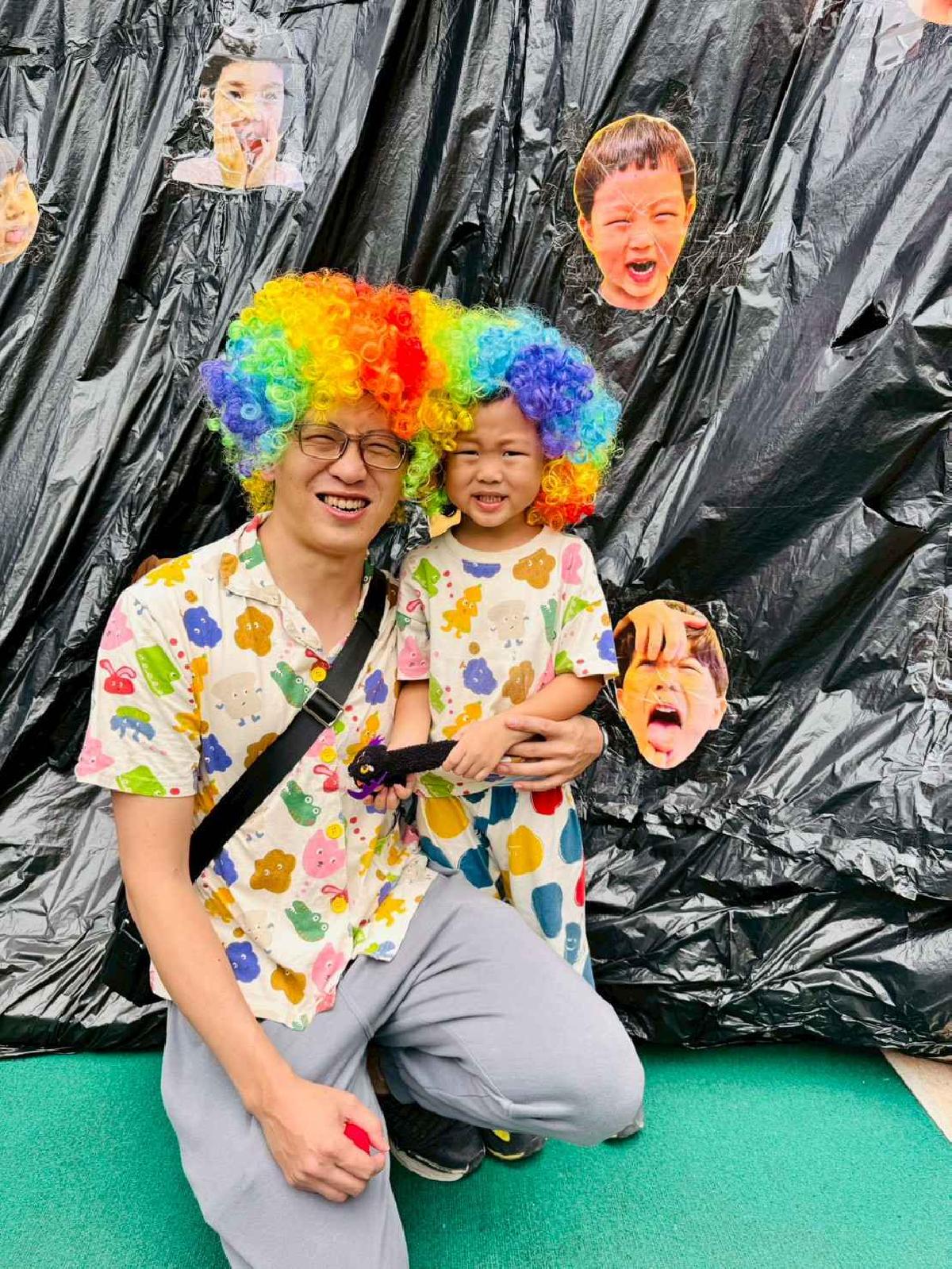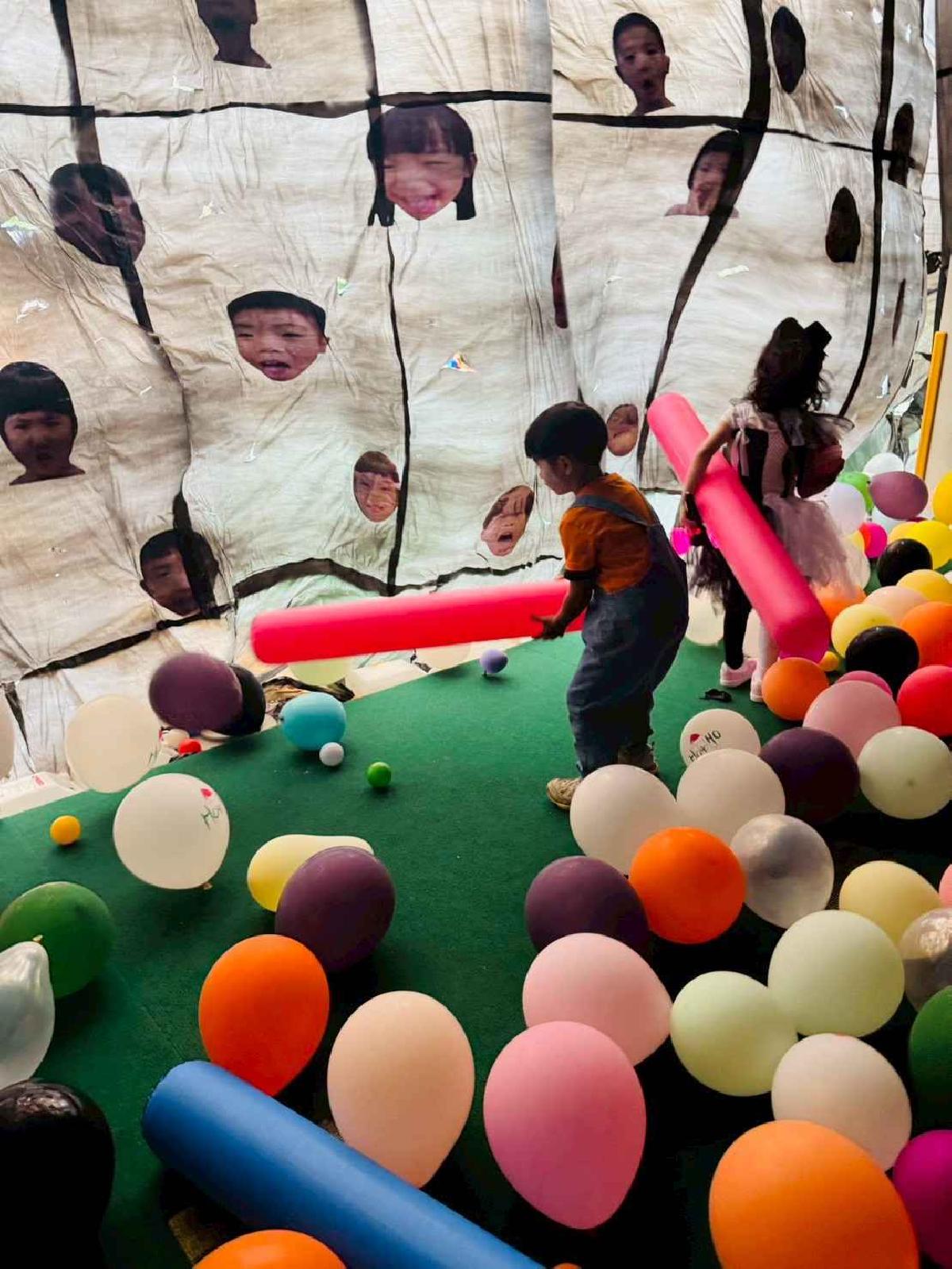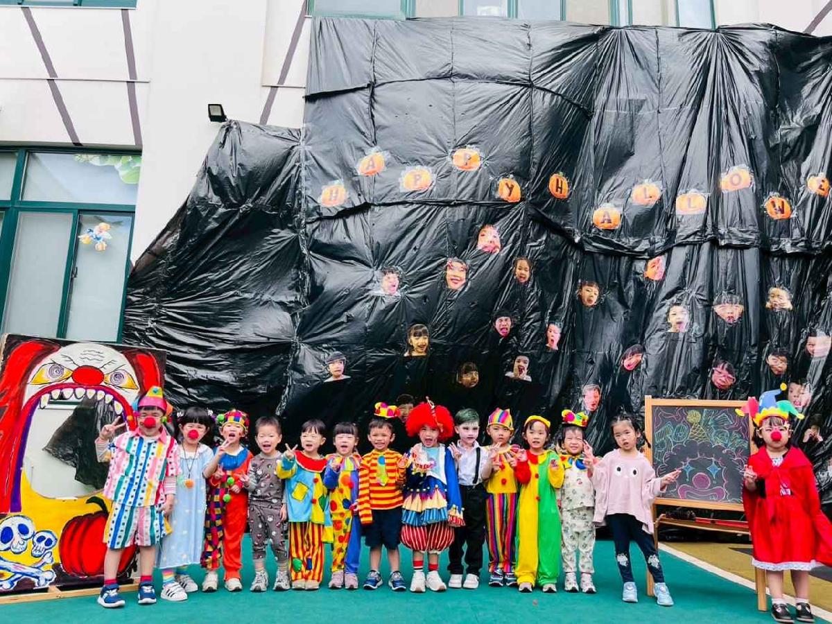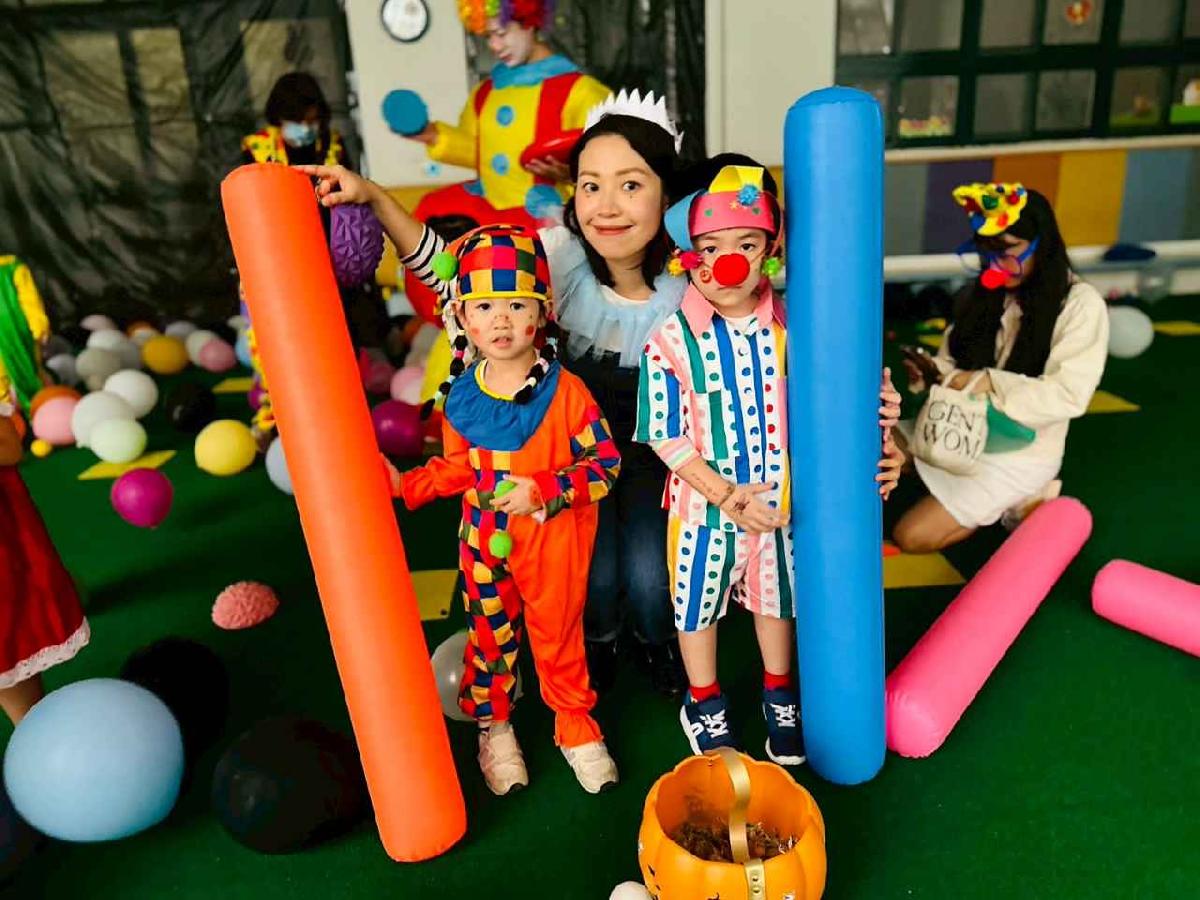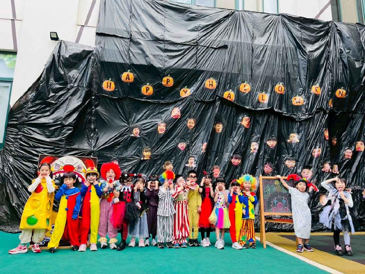 今年我們以《小丑鬼靈精PARTY》為主題,一整面貼滿孩子「鬼臉照」的主牆