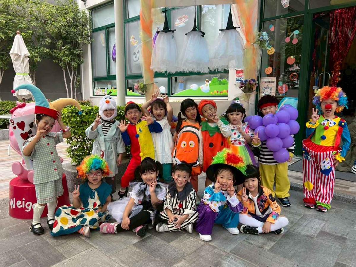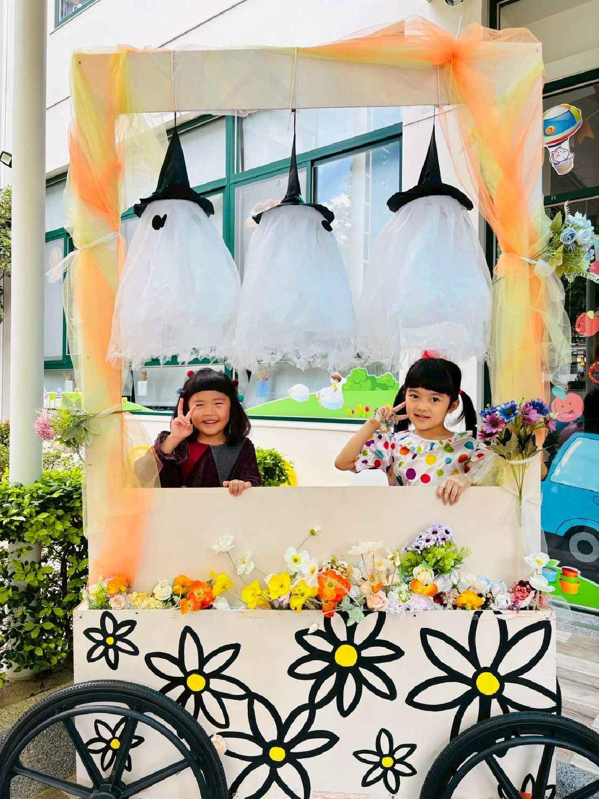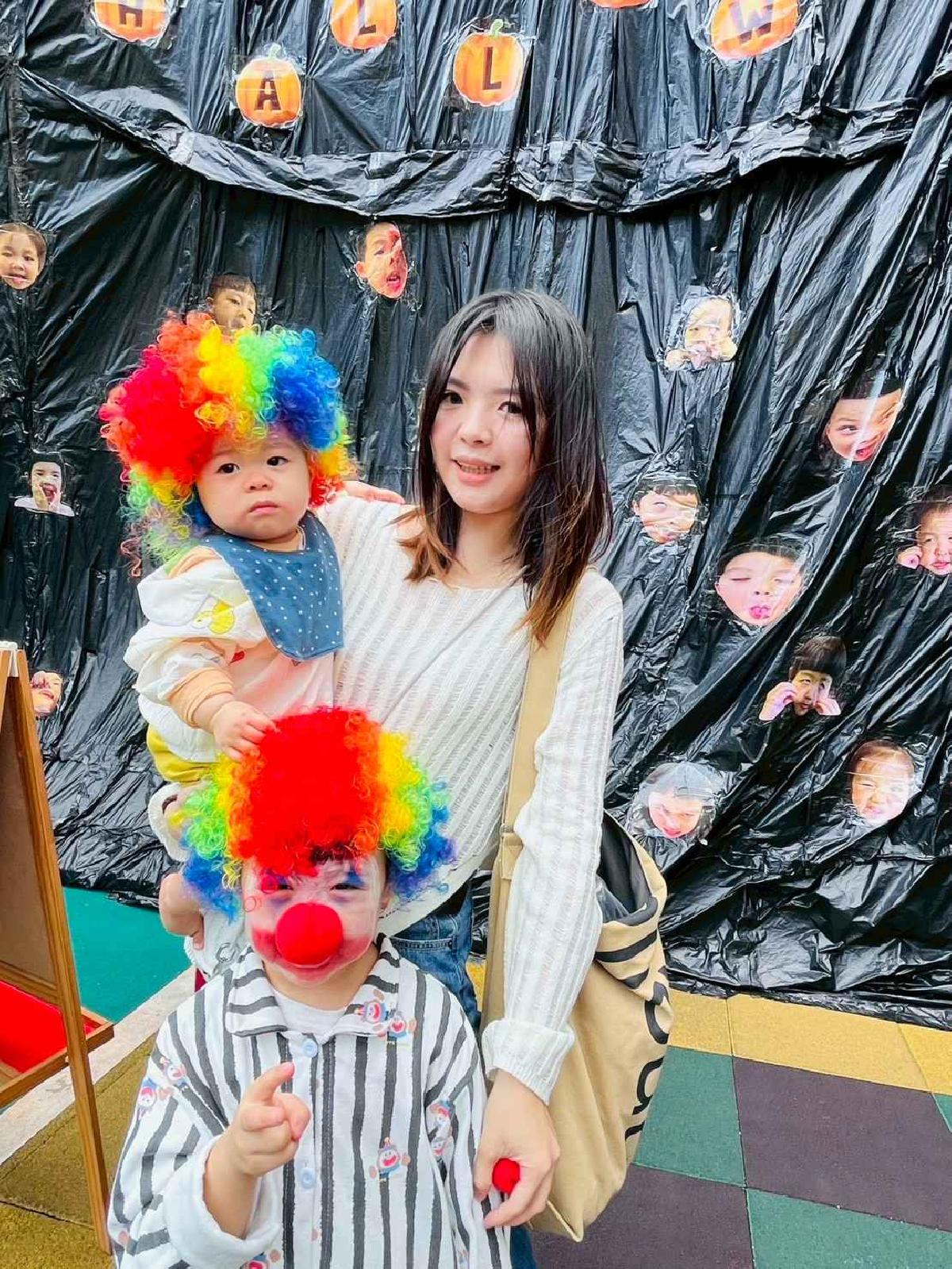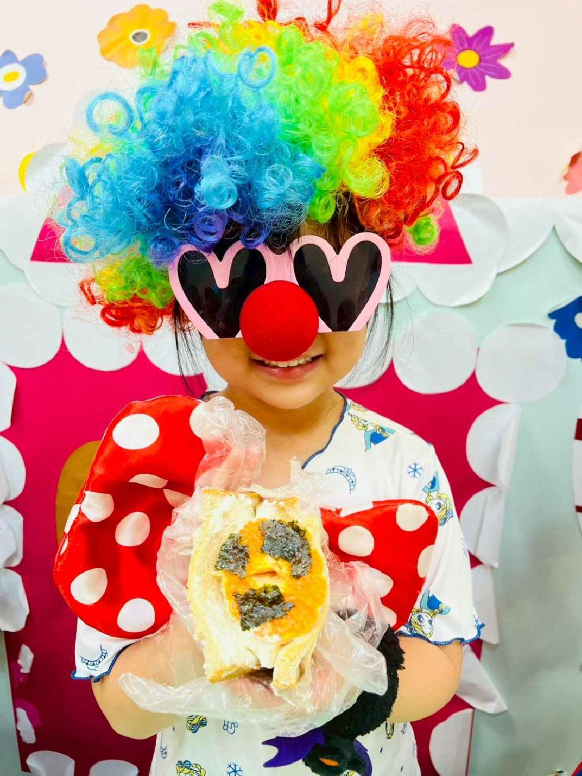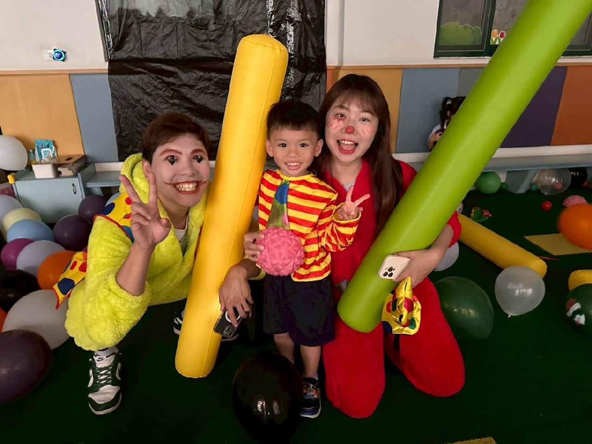 今年我們以《小丑鬼靈精PARTY》為主題,一整面貼滿孩子「鬼臉照」的主牆