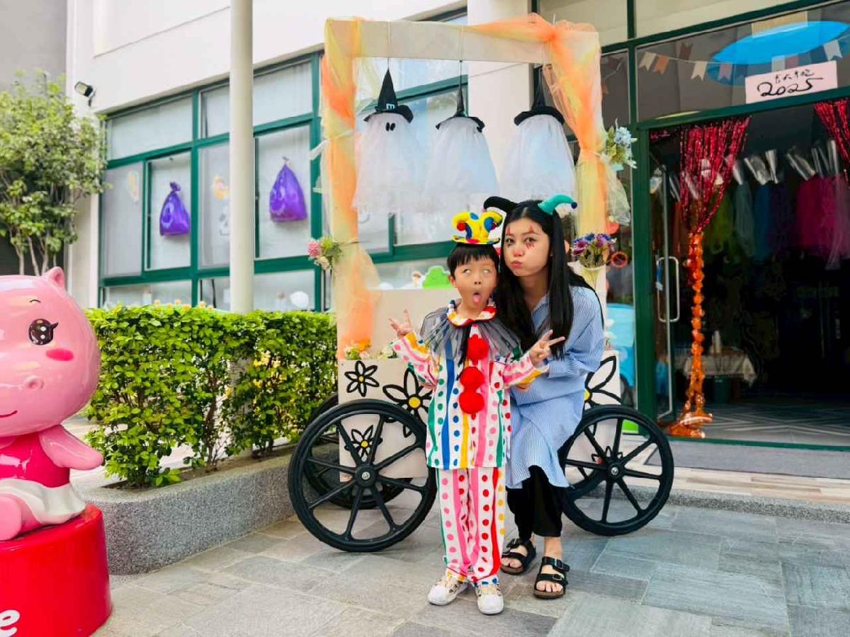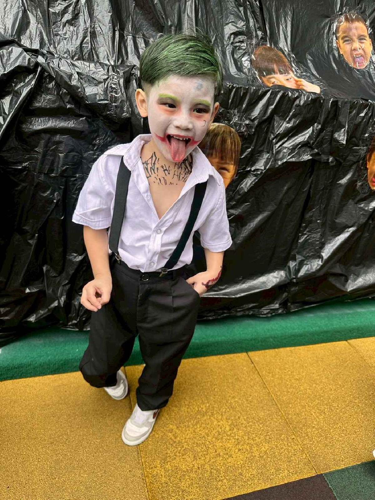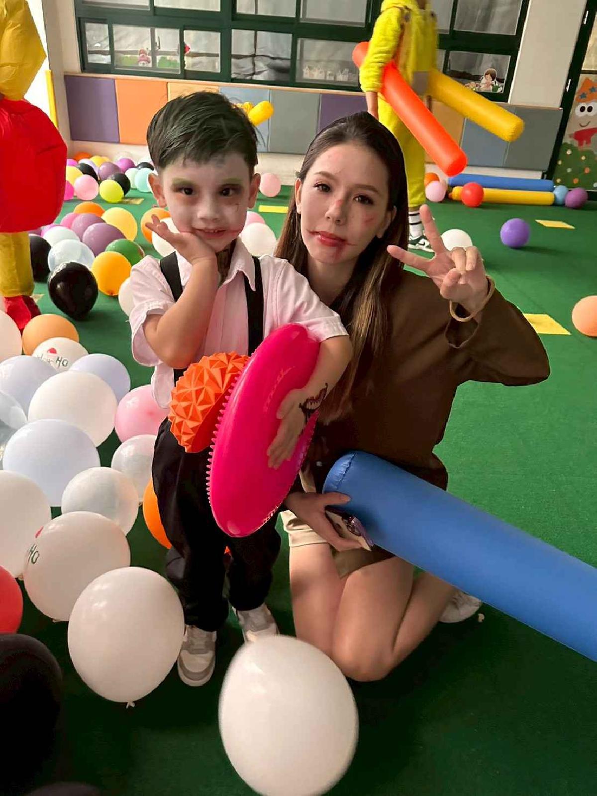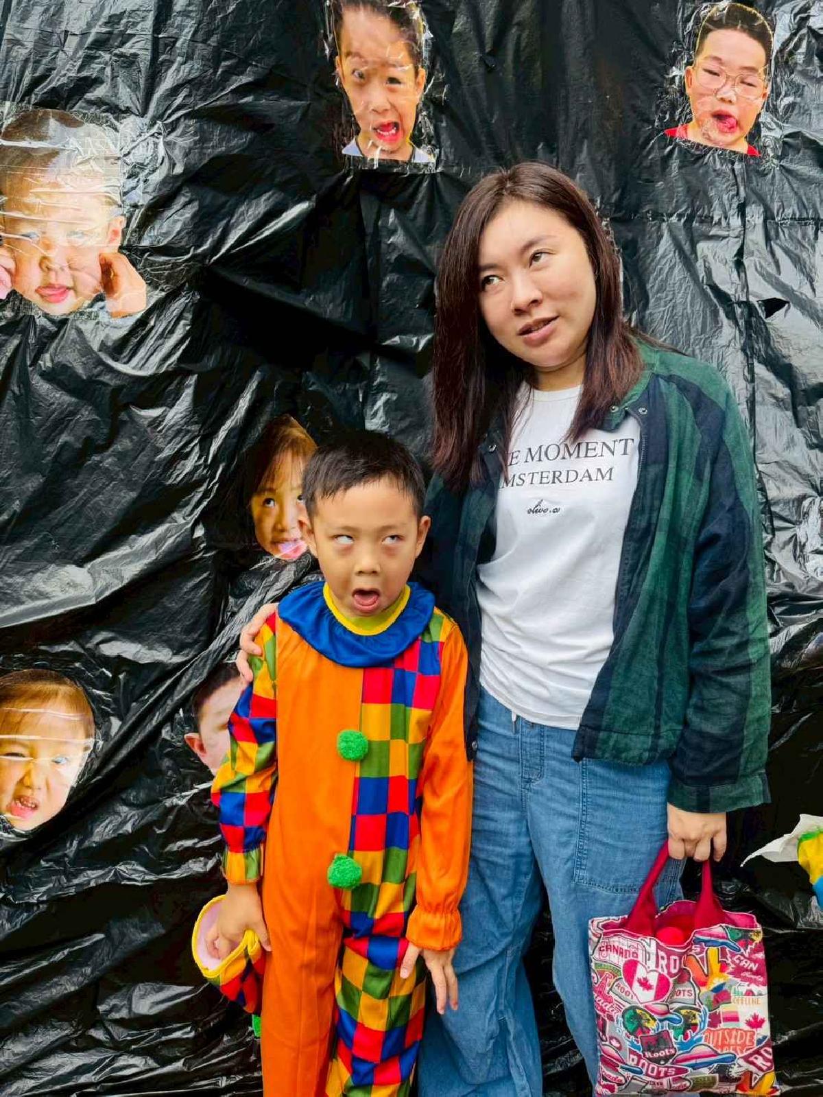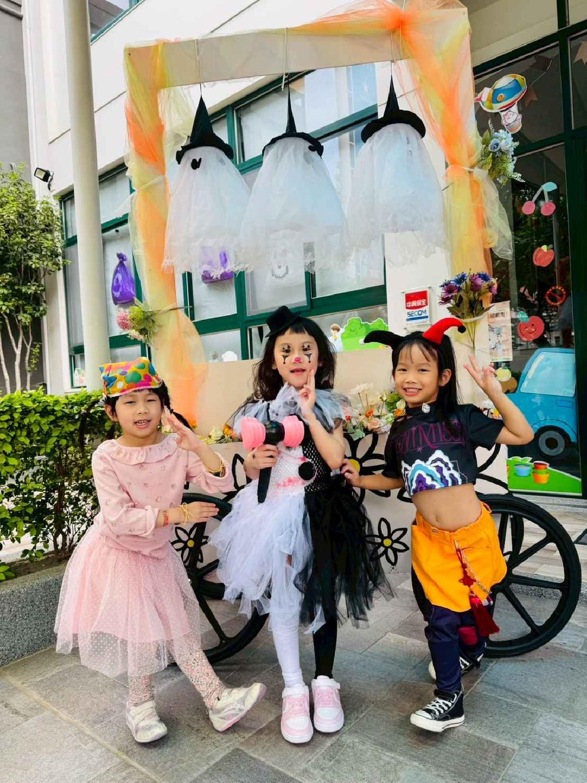 今年我們以《小丑鬼靈精PARTY》為主題,一整面貼滿孩子「鬼臉照」的主牆