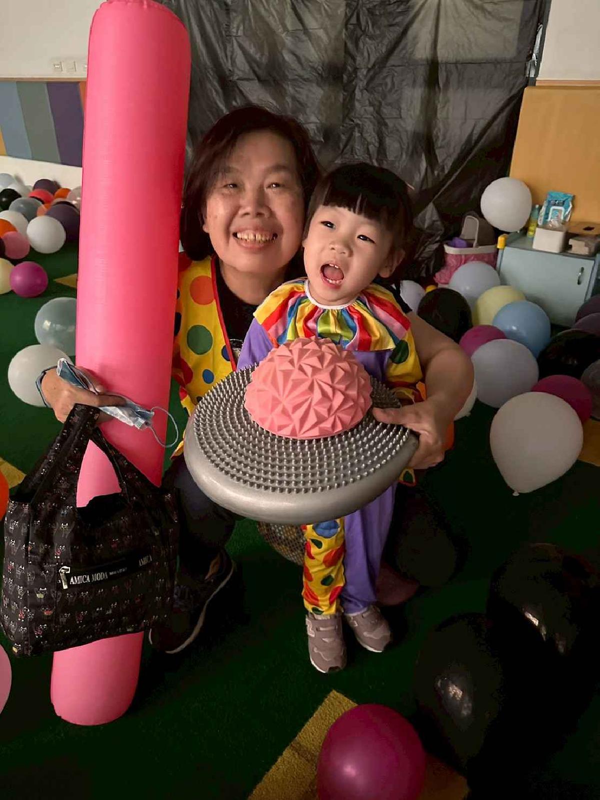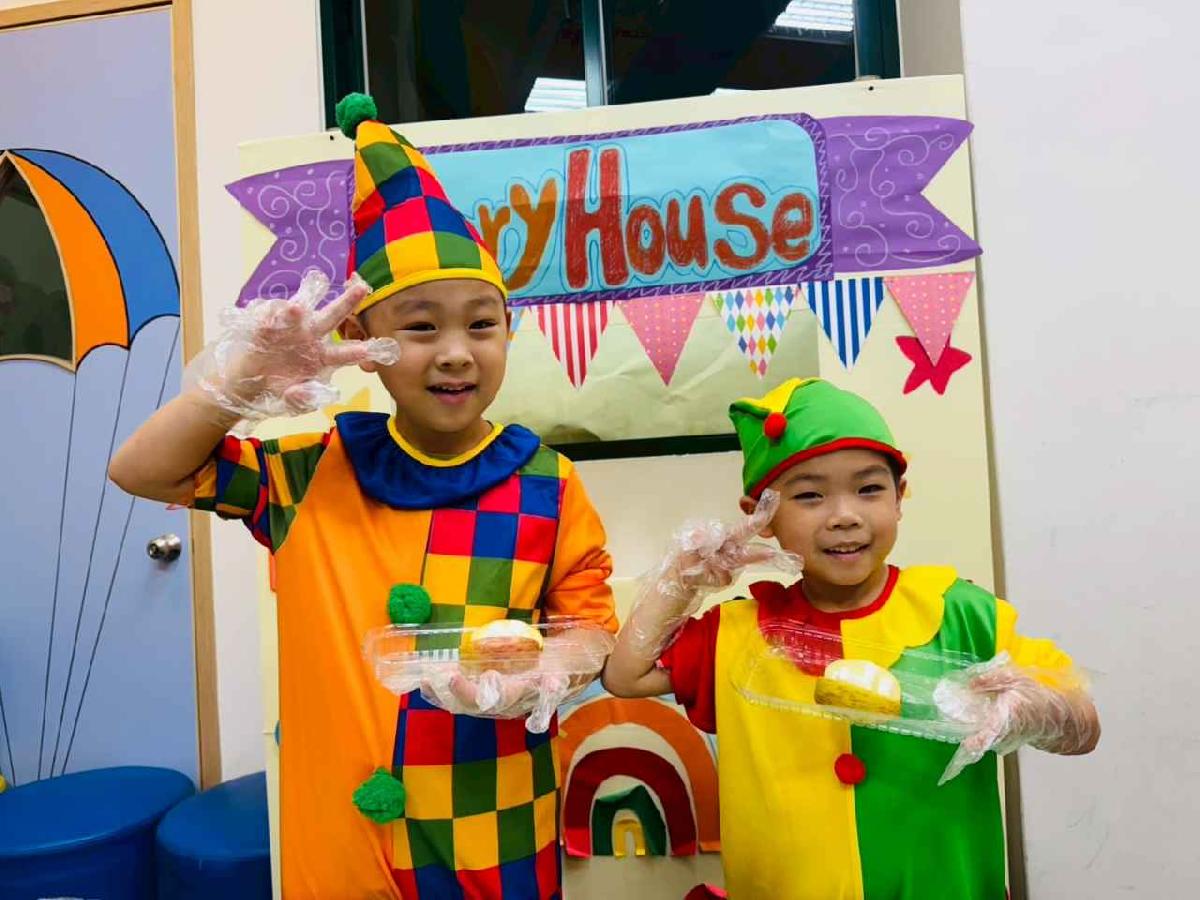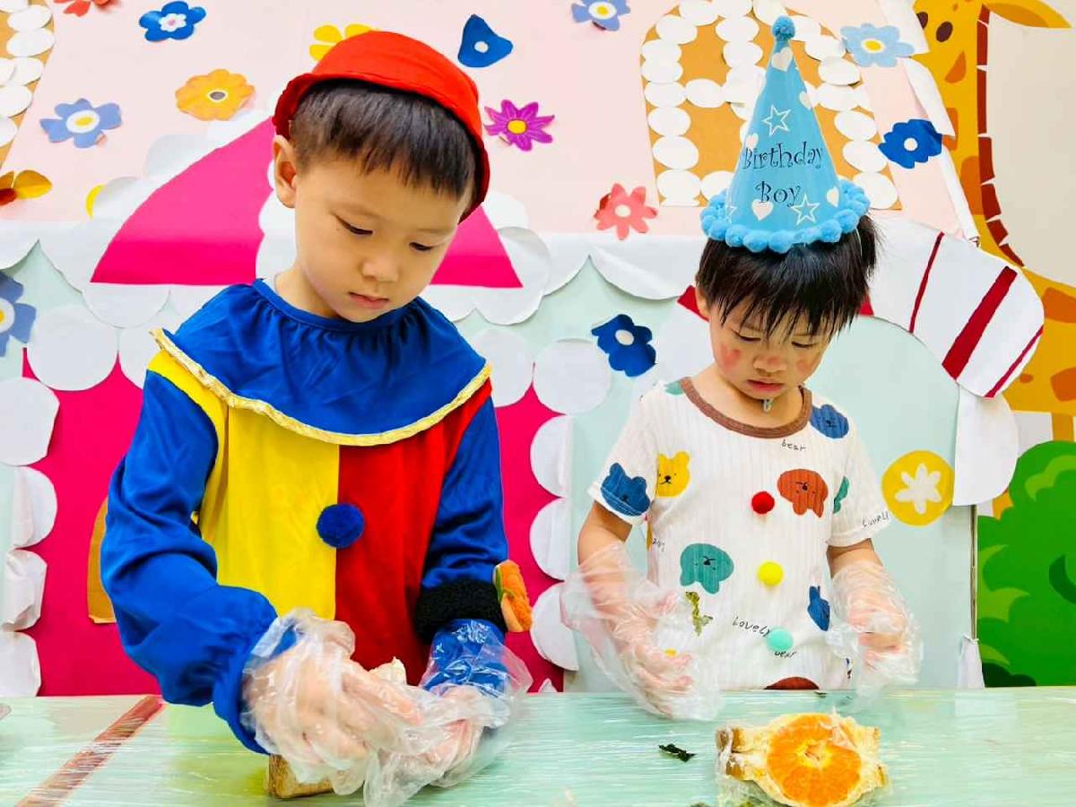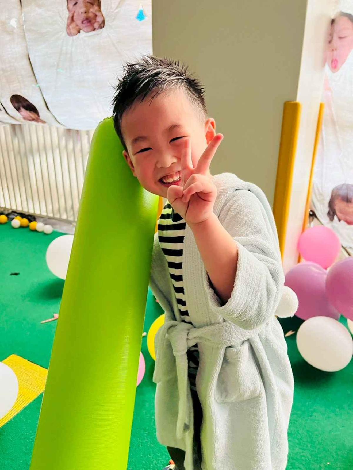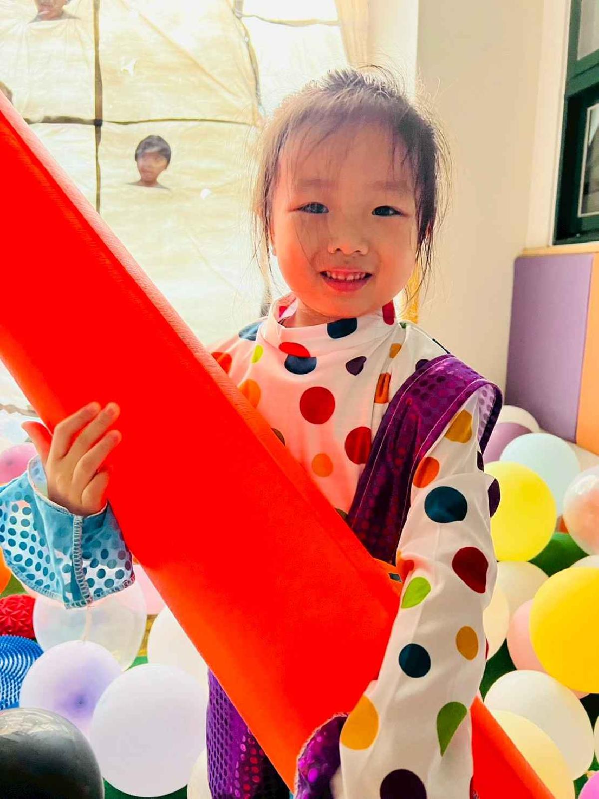 今年我們以《小丑鬼靈精PARTY》為主題,一整面貼滿孩子「鬼臉照」的主牆